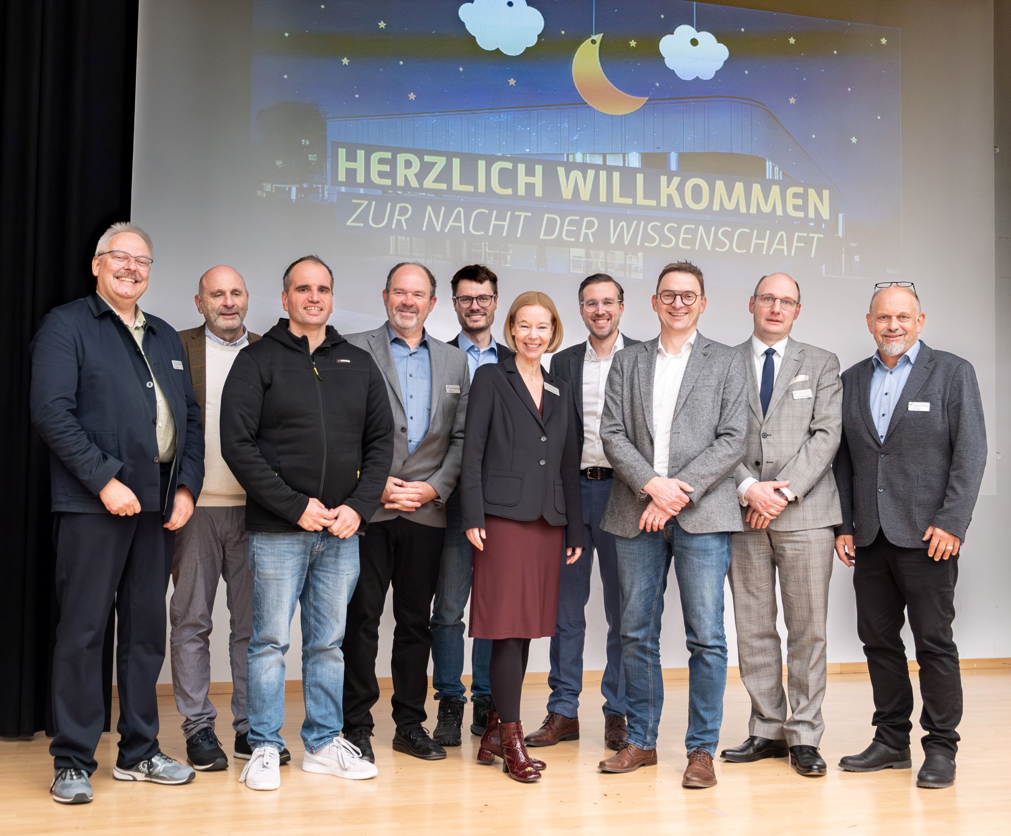 Die Präsidentin der Hochschule Trier Prof. Dr. Dorit Schumann und der Vizepräsident Prof. Dr. Henrik te Heesen begrüßten gemeinsam die rund 130 forschungsinteressierten Studierenden und Teilnehmenden aus Politik und Wirtschaft. Frau Schumann nutzte die Gelegenheit und informierte die anwesenden Gäste über das anstehende 30-jährige Jubiläum des Umwelt-Campus in 2026 und den doppelten Erfolg beim Deutschen Nachhaltigkeitspreis. Der Umwelt-Campus Birkenfeld ist in den Kategorien „Schulen und Hochschulen“ sowie „Aus- und Weiterbildung“ als Sieger des Deutschen Nachhaltigkeitspreises 2026 bestätigt und setzt damit neue Maßstäbe für nachhaltige Hochschulentwicklung und Praxisnähe in Lehre, Forschung und Transfer. Der Umwelt-Campus Birkenfeld ist zudem die einzige Organisation, die in diesem Jahr zwei Kategorien gewinnen konnte.