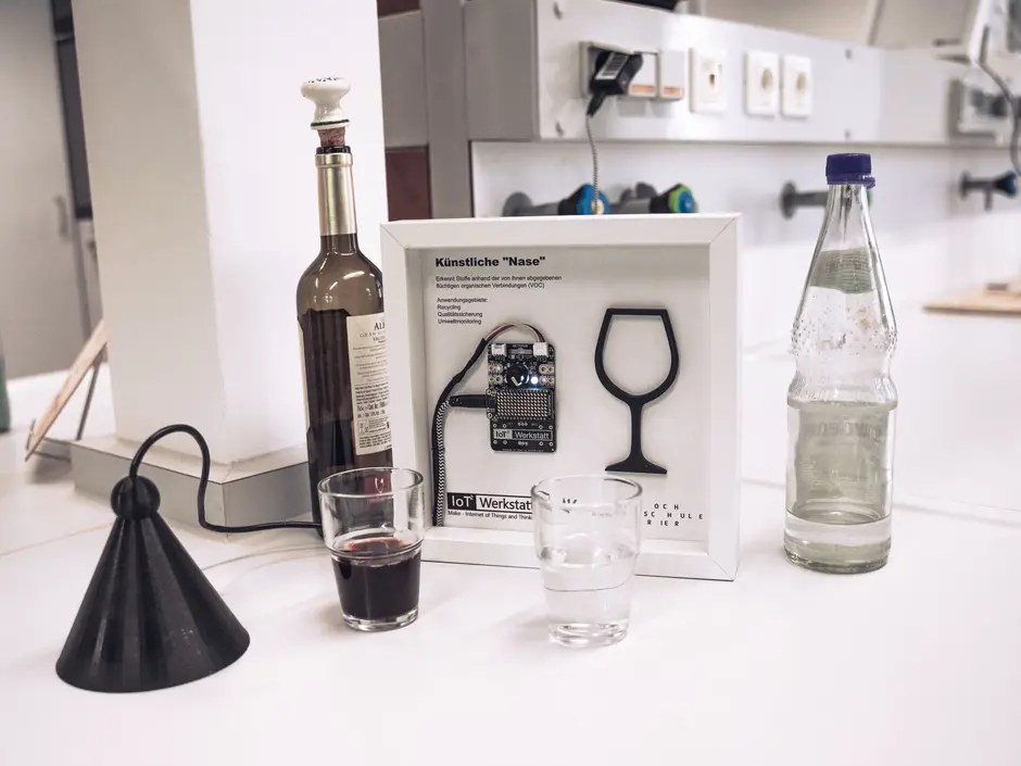 Die Detektion verschiedener Zustände eines Systems durch Analyse der austretenden Gase wird in vielen Bereichen angewandt oder gerade getestet, beispielsweise in der Industrie (Produktion, Qualitätskontrolle), Medizin (Erkennung von Anzeichen für Krankheiten), Sicherheit (Arbeitsplatzsicherheit, Polizei) oder beim Umweltmonitoring. In diesem Versuch wird beispielhaft eine Erkennung verschiedener Getränkesorten anhand ihrer VOC-Gasemissionen realisiert. Die Hardware muss nicht teuer sein: Der verwendete Gassensor Bosch BME680 kostet einzeln etwa 10 € und lässt sich auch an leistungsschwachen Mikrocontrollern problemlos betreiben.