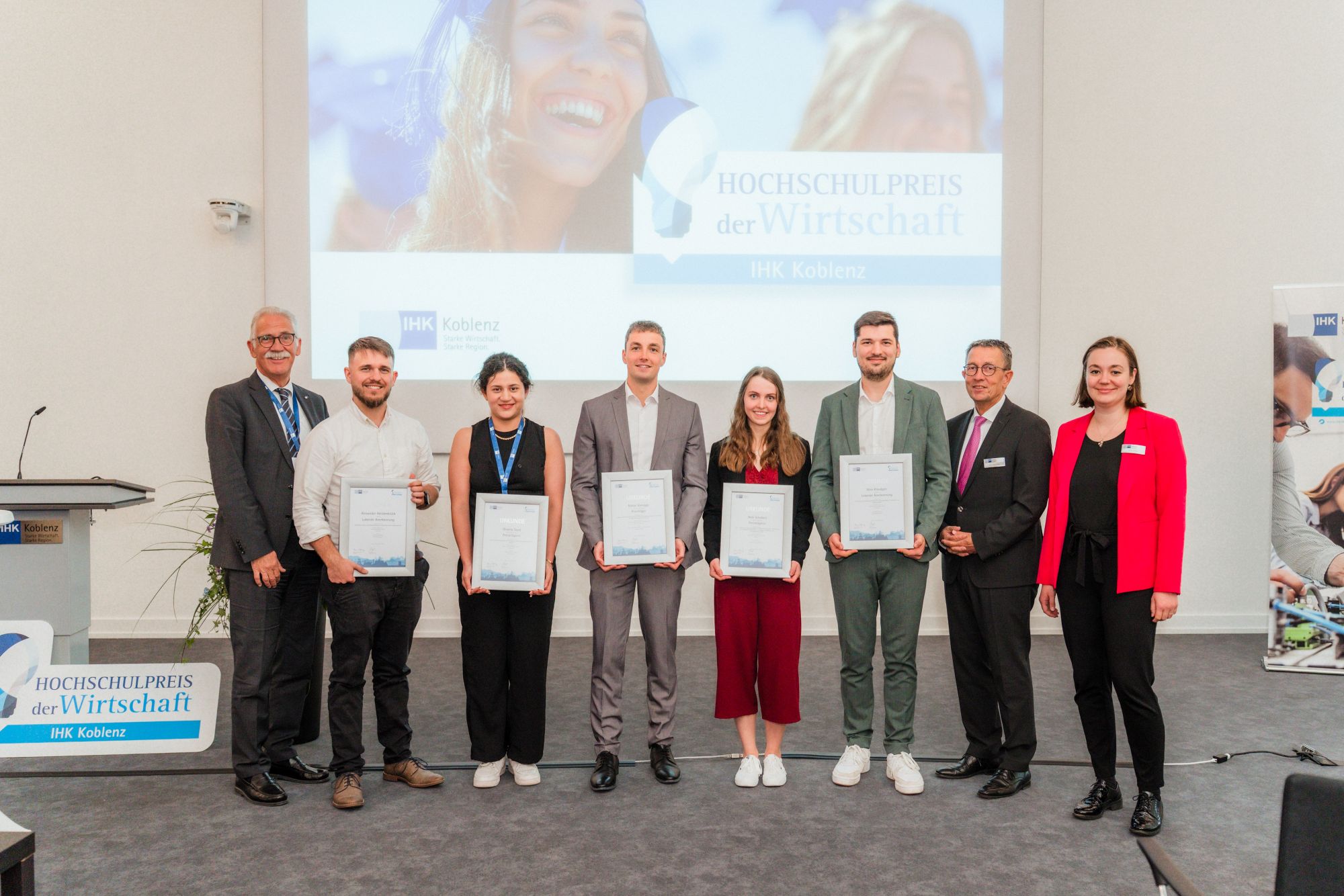 Bereits zum 24. Mal verlieh die IHK Koblenz in diesem Jahr den IHK-Hochschulpreis der Wirtschaft. Eine Auszeichnung mit Tradition für Studierende, die ihr an einer Hochschule erworbenes Wissen im Rahmen ihrer Abschlussarbeit gezielt in Unternehmen aus der Region einbringen. Dabei stärkt der Hochschulpreis die produktive Zusammenarbeit zwischen Unternehmen, Hochschulen und Studierenden: Unternehmen profitieren langfristig von neuen Ansätzen und zukunftsorientierten Lösungen, Studierende können ihre Fachkenntnisse direkt im Unternehmen praktisch einbringen.
