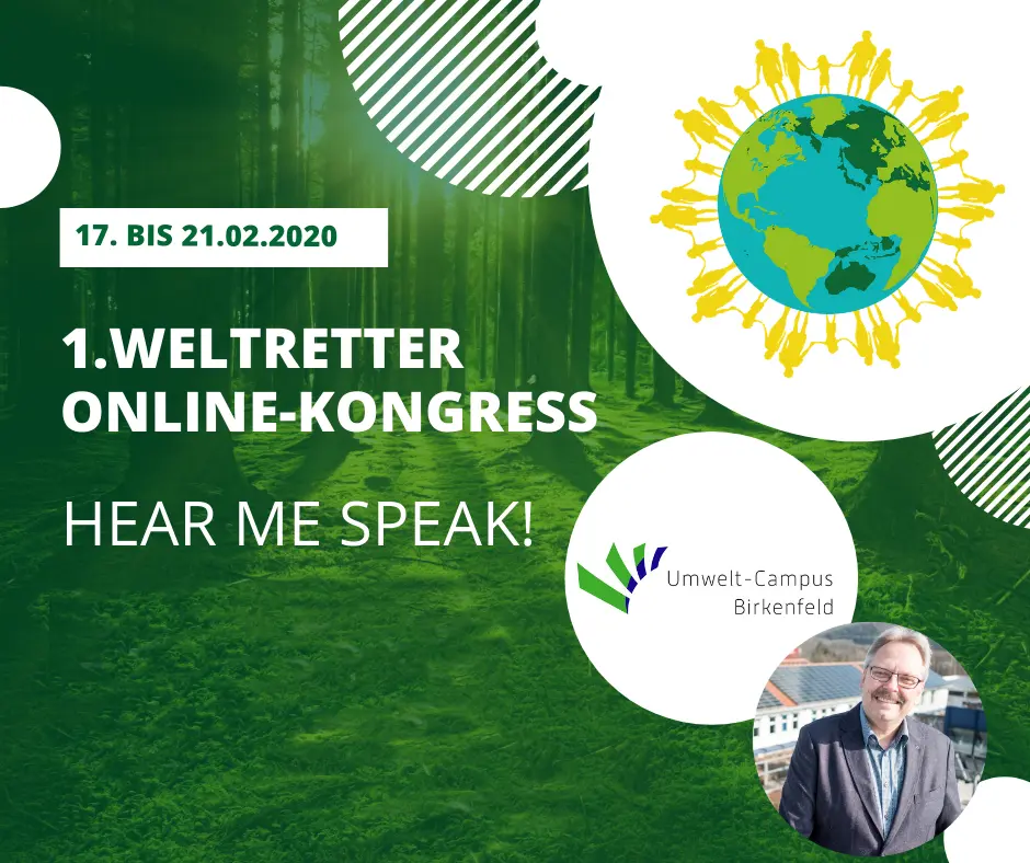 Vom 17.-21. Februar 2020 fand der 1. Weltretter Online-Kongress der Weltretter Initiative statt. Auch Prof. Dr. Klaus Helling hat an dem Kongress teilgenommen und ein Interview zum Umwelt-Campus Birkenfeld, den Studienmöglichkeiten und dem ganzheitlichen Nachhaltigkeitskonzept des Campus gegeben.