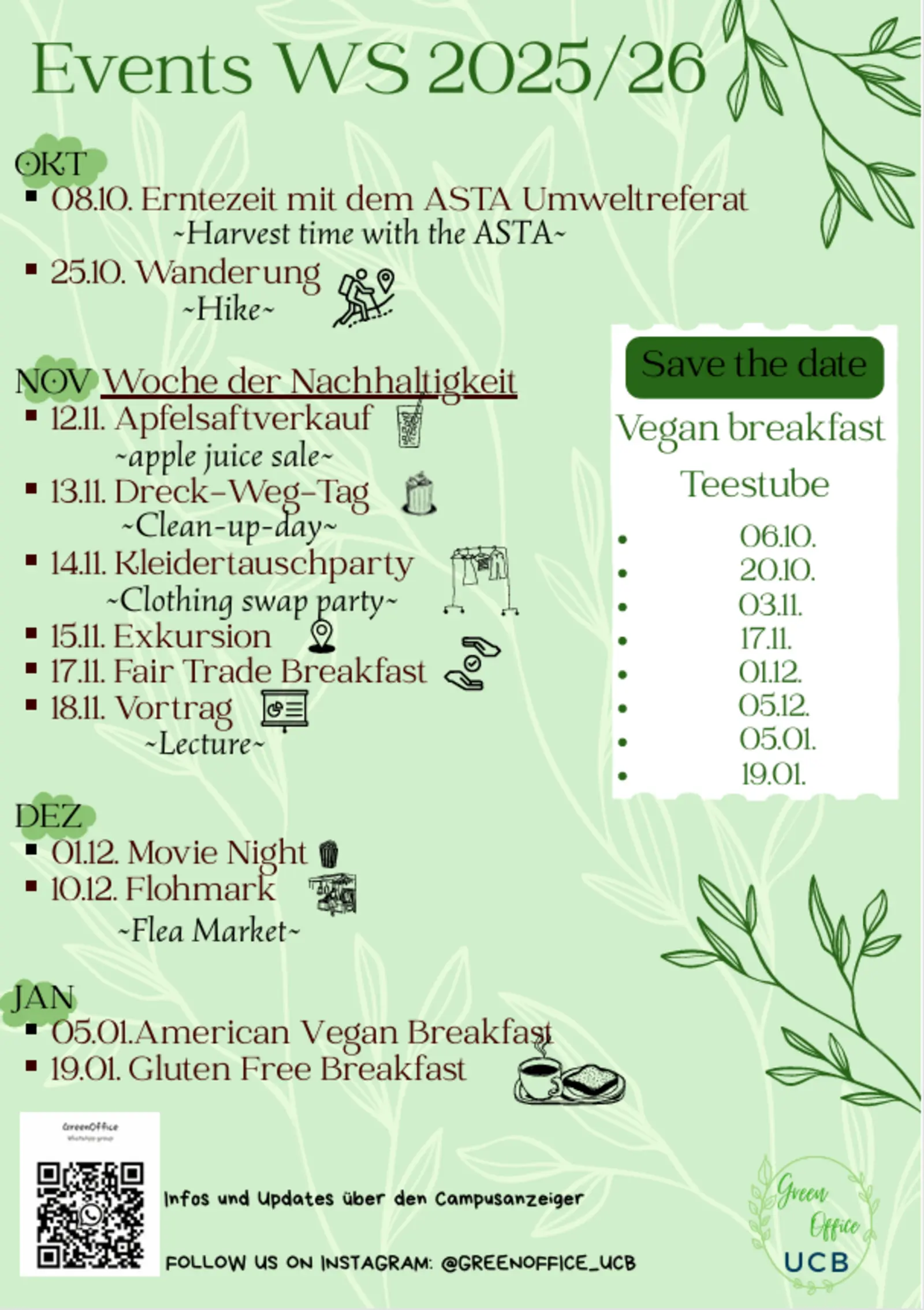 Das Green Office ist ein von Studierenden gegründetes und geführtes Nachhaltigkeitsbüro. Wir planen Events hier am Campus, die das Ziel haben Studierende an Umweltschutz heranzubringen – und auch noch Spaß machen!
