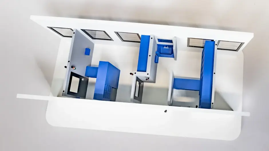 Die Ausbildungs-/Trainings-Personalschleuse kann auch von Unternehmen zur Schulung der Mitarbeiterinnen und Mitarbeiter im Rahmen der aseptischen Ankleide-Qualifizierung (Aseptic gowning qualification) genutzt werden. Sprechen Sie uns gerne an! Ansprechpartner: Prof. Dr.-Ing. Percy Kampeis
