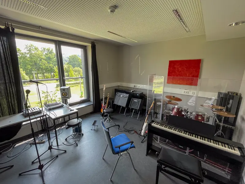 Im Bandraum habt ihr die Möglichkeit eure musikalische Seite zu entdecken, regelmäßig mit Freunden zu proben oder auch Musik selbst zu produzieren.