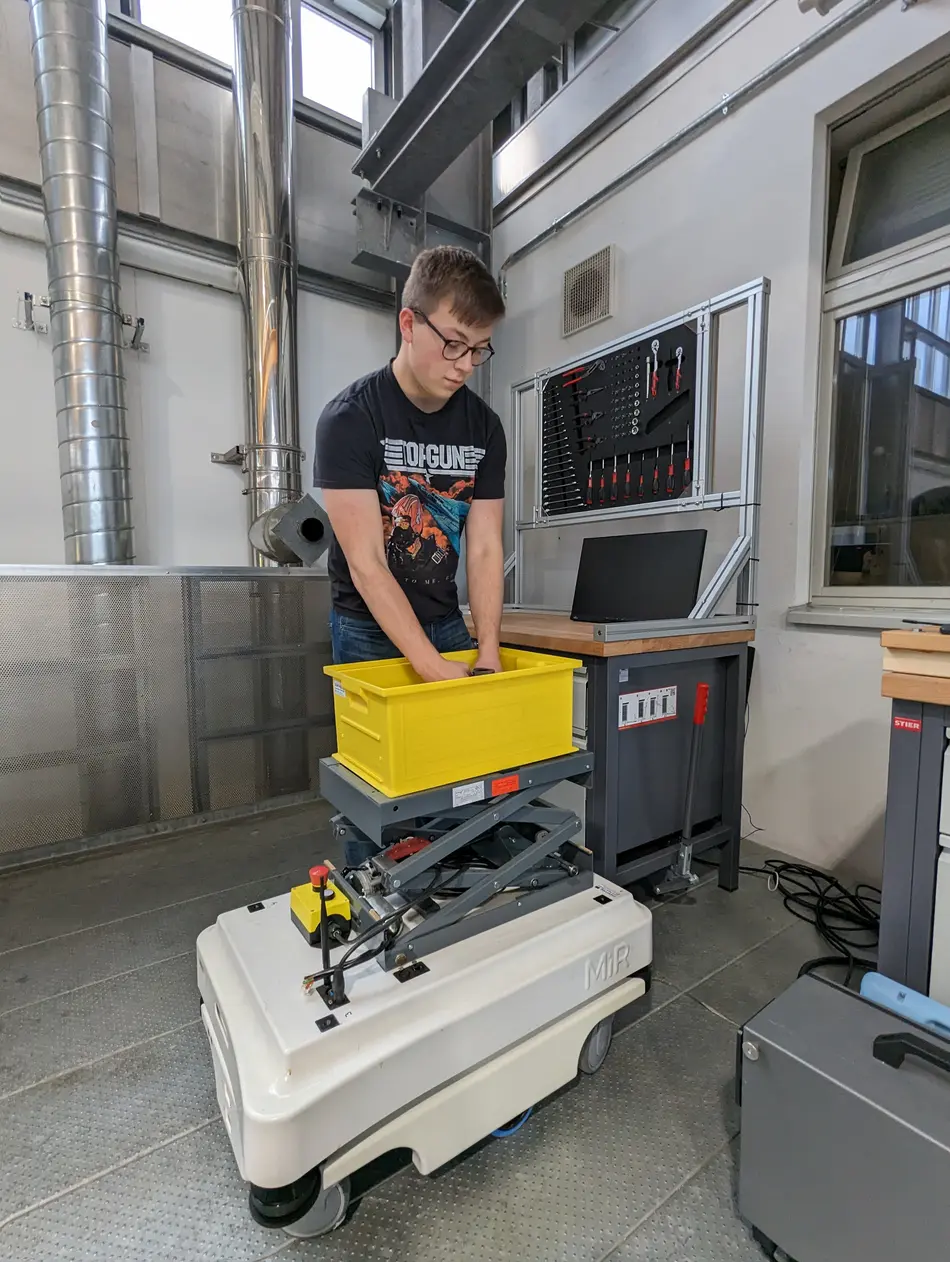 Im ersten Wettbewerbsteil präsentierte das Team des Umwelt-Campus die Entwicklungen der Industrie von 1.0 bis 5.0, mit einem Schwerpunkt auf den neuesten Entwicklungen in den Bereichen Industrie 4.0 und 5.0. Die Teammitglieder identifizierten Herausforderungen im Remanufacturing und präsentierten verschiedene Lösungen. Dabei wurde das Augenmerk auf Werkerassistenzsysteme, Bildverarbeitungssysteme, Objekterkennung, digitale Zwillinge und automatisierte Palettiersysteme gelegt.