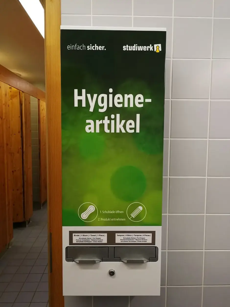 As of now, there is a hygiene vending machine in the restroom for female students in the central new building (ZN) on the Umwelt-Campus Birkenfeld, which offers the most common hygiene products in Germany - tampons and pads. This provides all students with free access to menstrual products. The Studierendenwerk Trier supports the project work of the Green Office by purchasing and filling the vending machine.