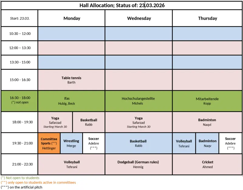 → Transponders for the band rooms can be borrowed for one semester on request for a deposit of €50. Proof of liability insurance (Haftpflichtversicherung) is required.