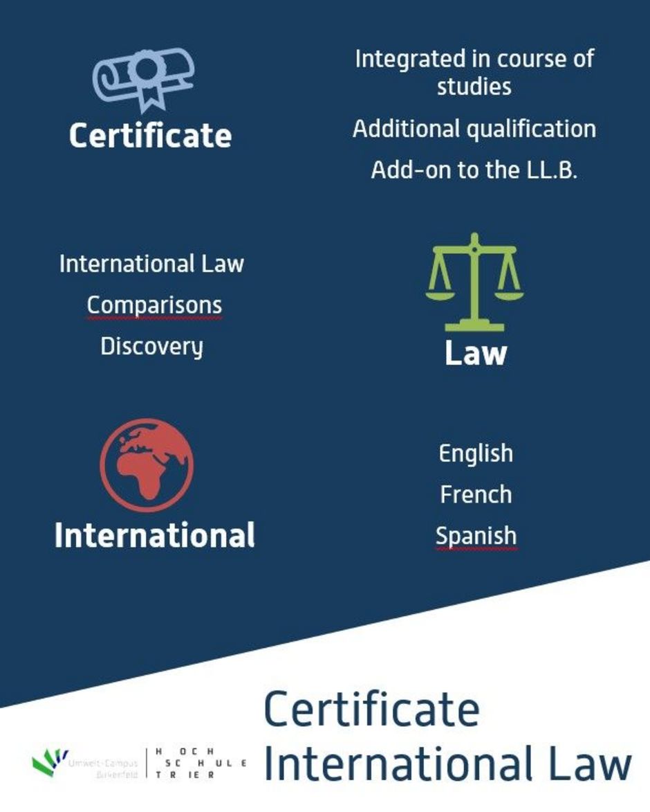 Questions concerning the certificate law international can be addressed to Prof. Dr. Kathrin Nitschmann or Prof. Dr. Stefan Diemer.
