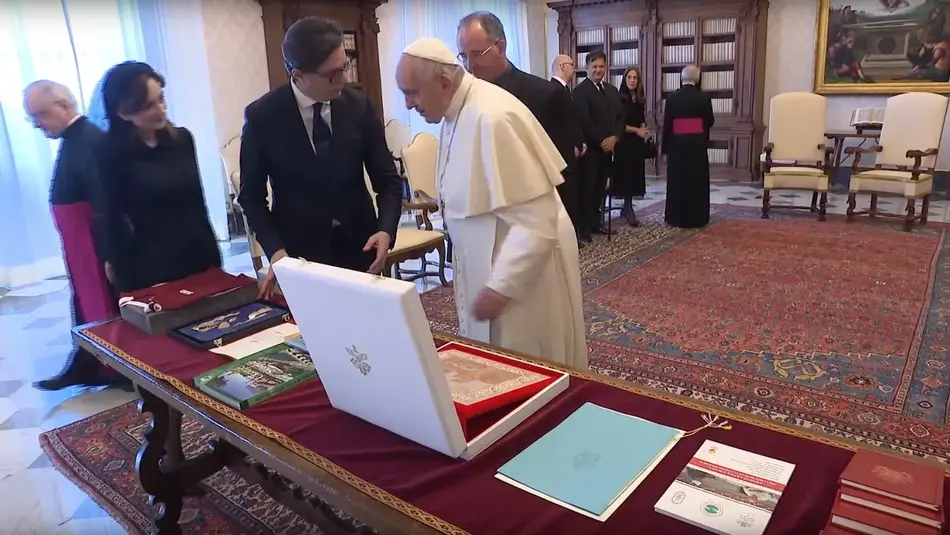 Biljana Klekachkoska says: "I was honored and delighted to create a gift for Pope Francis, that was presented by our president Stevo Pendarovski, on the occasion of Saints Cyril and Methodius Day in Rome this year."