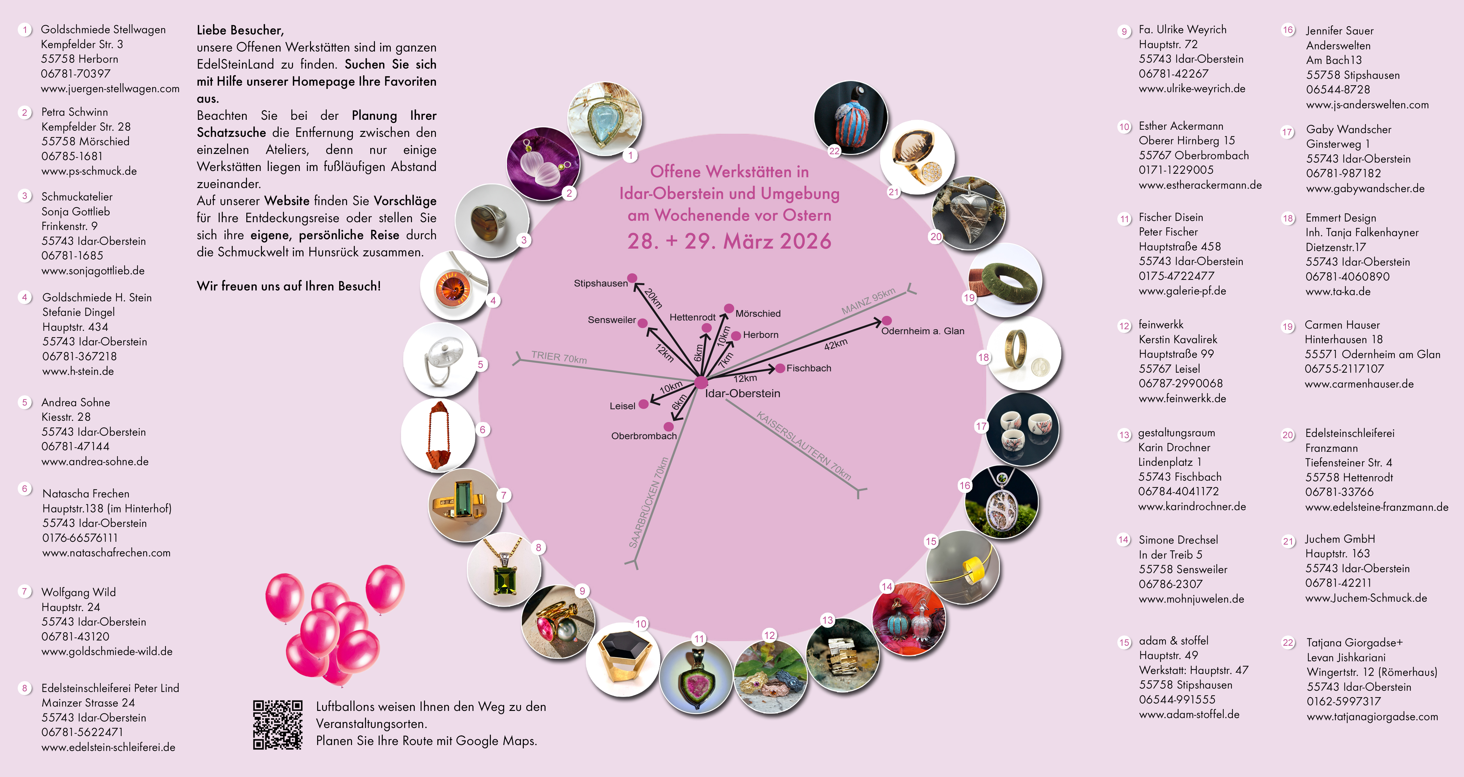 The workshops are open on 28 and 29 March from 10 am to 7 pm, free of charge and with no need to book in advance. For more information, visit offene-werkstätten-idar-oberstein.de