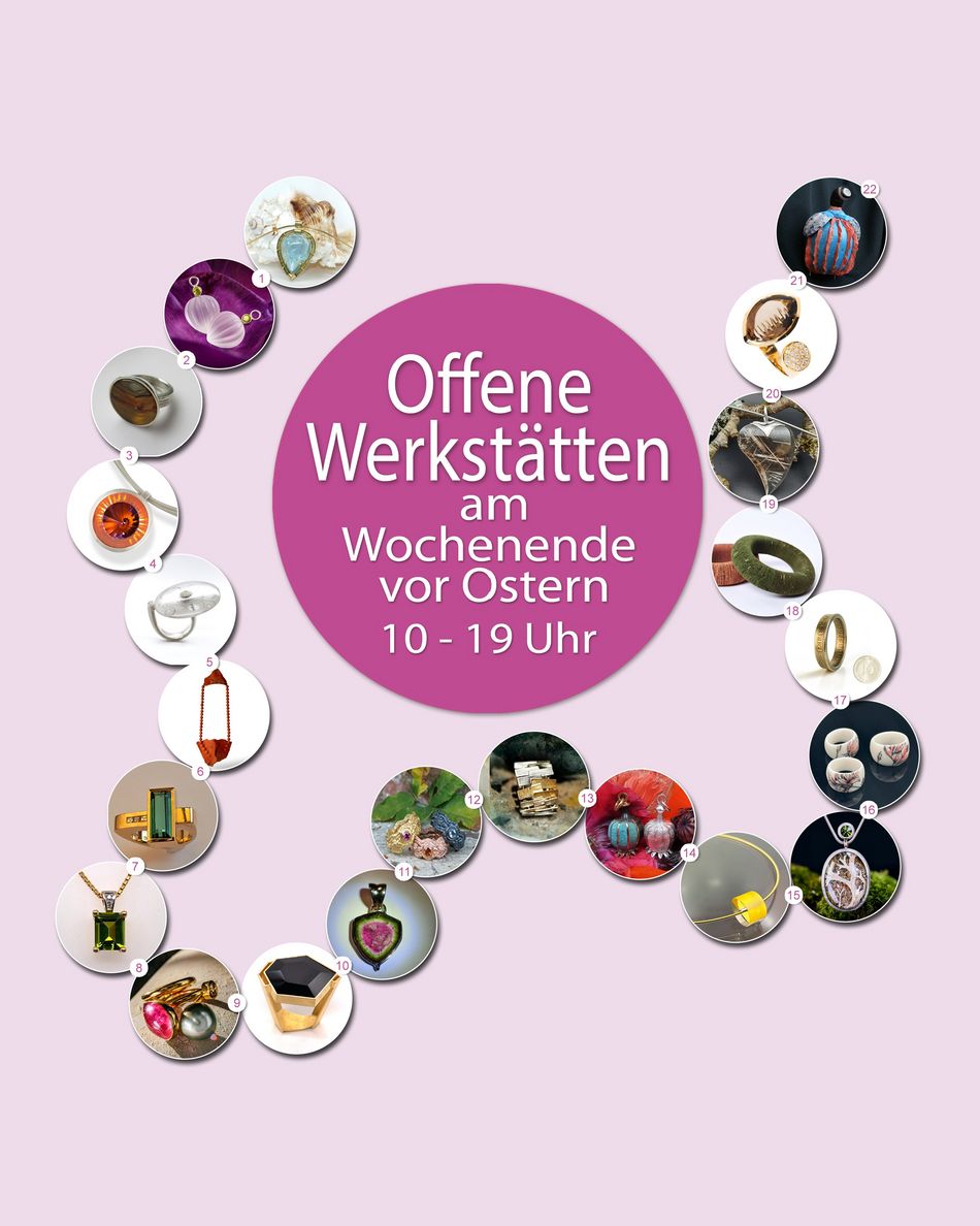 This unique event has become a fixture in the diaries of jewellery lovers from all over Germany. At the small ‘get-togethers’ held in the workshops, you have the opportunity to chat with the designers and discover the individual styles of both traditional and experimental working methods. You can try on the pieces, learn how they are made and even buy them. Individual designer jewellery meets traditional craftsmanship, and each workshop has its own distinctive signature.