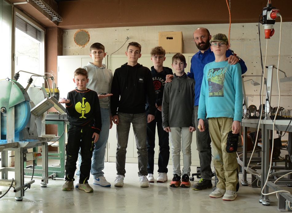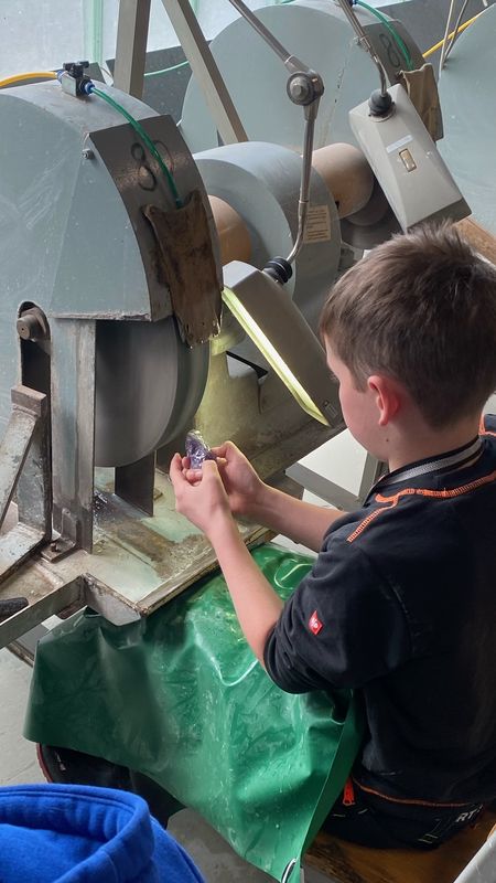 As in previous years, the Boys' Day took place at the Design Campus on April 25. After the Idar-Oberstein campus was unable to take part last year due to the fire in summer 2022, this year Boys' Day was offered again in the new building in Saarstrasse. Six pupils between the ages of 10 and 14 visited the Campus for Gemstones and Jewellery. Levan Jishkariani, head of the gemstone workshop, provided the boys with stones from the stone storage and gave them an introduction to the cutting, engraving and polishing machines. The boys were able to be creative in the stone workshop all day. During the lunch break, the barbecue was fired up and sausages were provided for the participants.