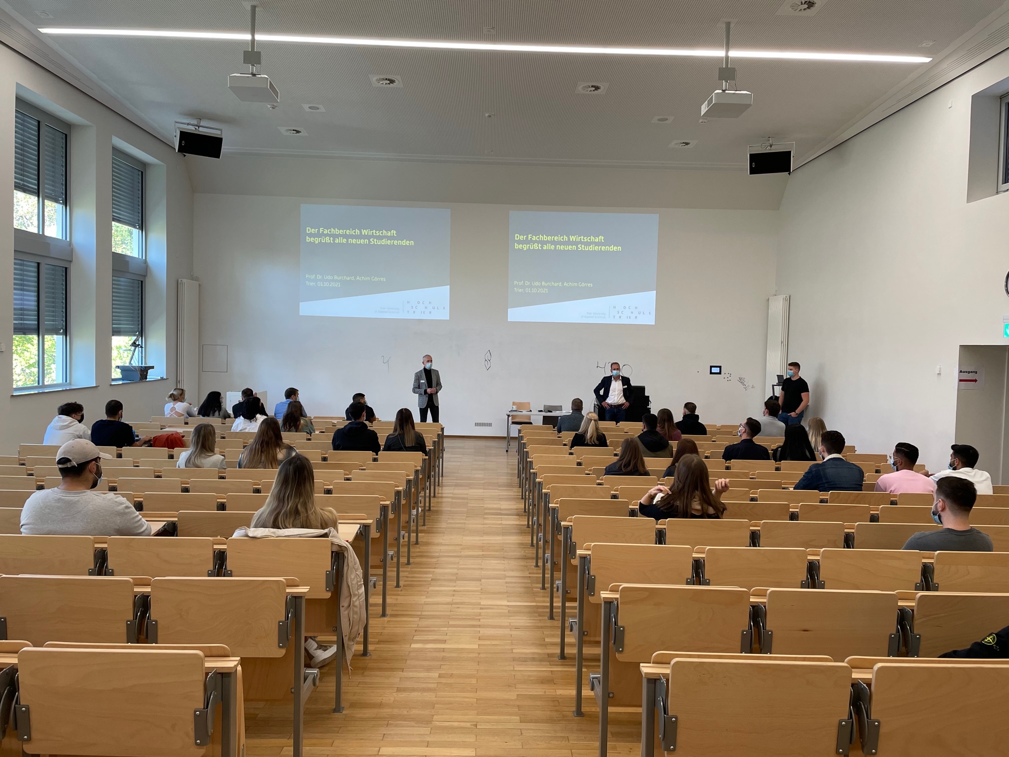 After the welcome by the Dean of the Faculty, Prof. Dr. Burchard, and Mr. Görres, the total of 202 newly enrolled students were welcomed by fellow students from higher semesters to the Study Buddy Programme.