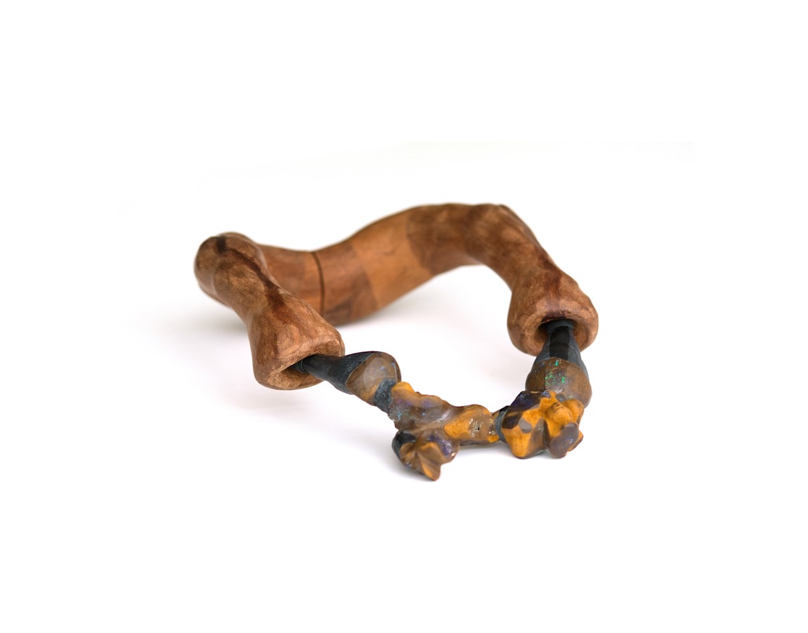 In his series Ruler, Levan Jishkariani (MFA) combines gemstones, wood, steel, and synthetic materials. His works are characterised by constructive tension, visibly articulated joints, and a deliberate play with weight, balance, and material contrasts.
