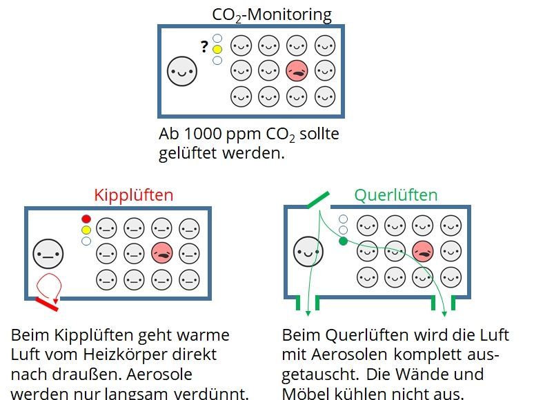 Ventilation means not only air exchange, but also heat loss in winter. A sustainable strategy should also take this effect into account. If, as in most schools, there is no modern air-conditioning technology with heat exchanger, the only way to avoid this is to monitor the CO2 and to ventilate manually on a needs-oriented or regular basis.