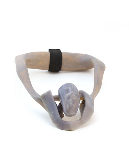In his ‘Ruler’ series, Jishkariani combines gemstones with wood and steel in unusual ways. His works are characterised by structural tension, deliberately visible joints, and a play on weight, balance and material contrasts. The starting point for his artistic exploration is social structures and rules, and their influence on the individual. He translates these considerations into wearable objects with bold and powerful expressiveness.