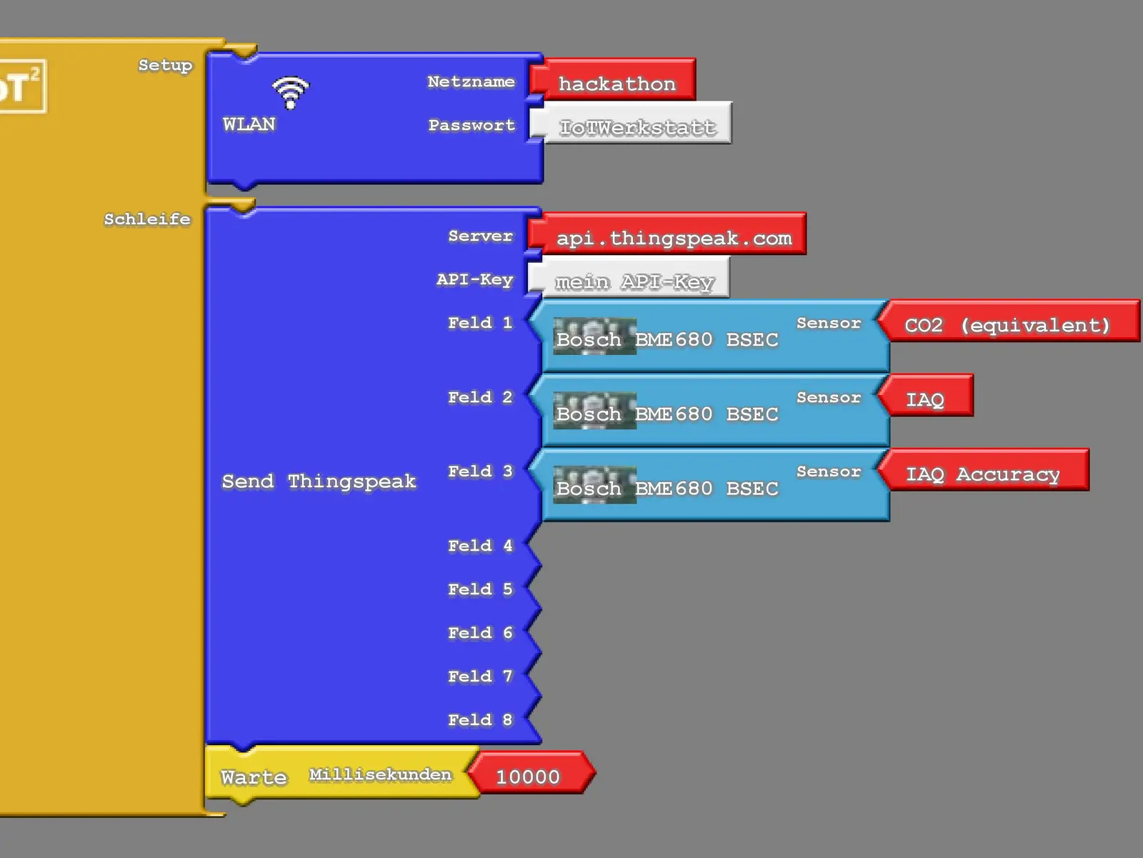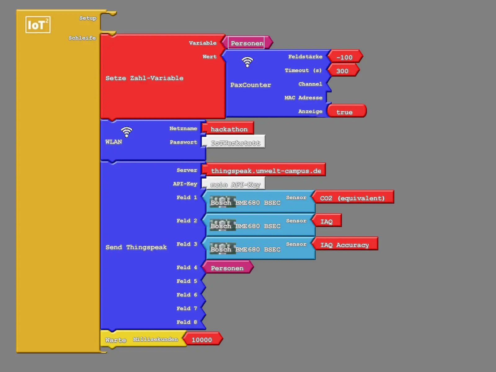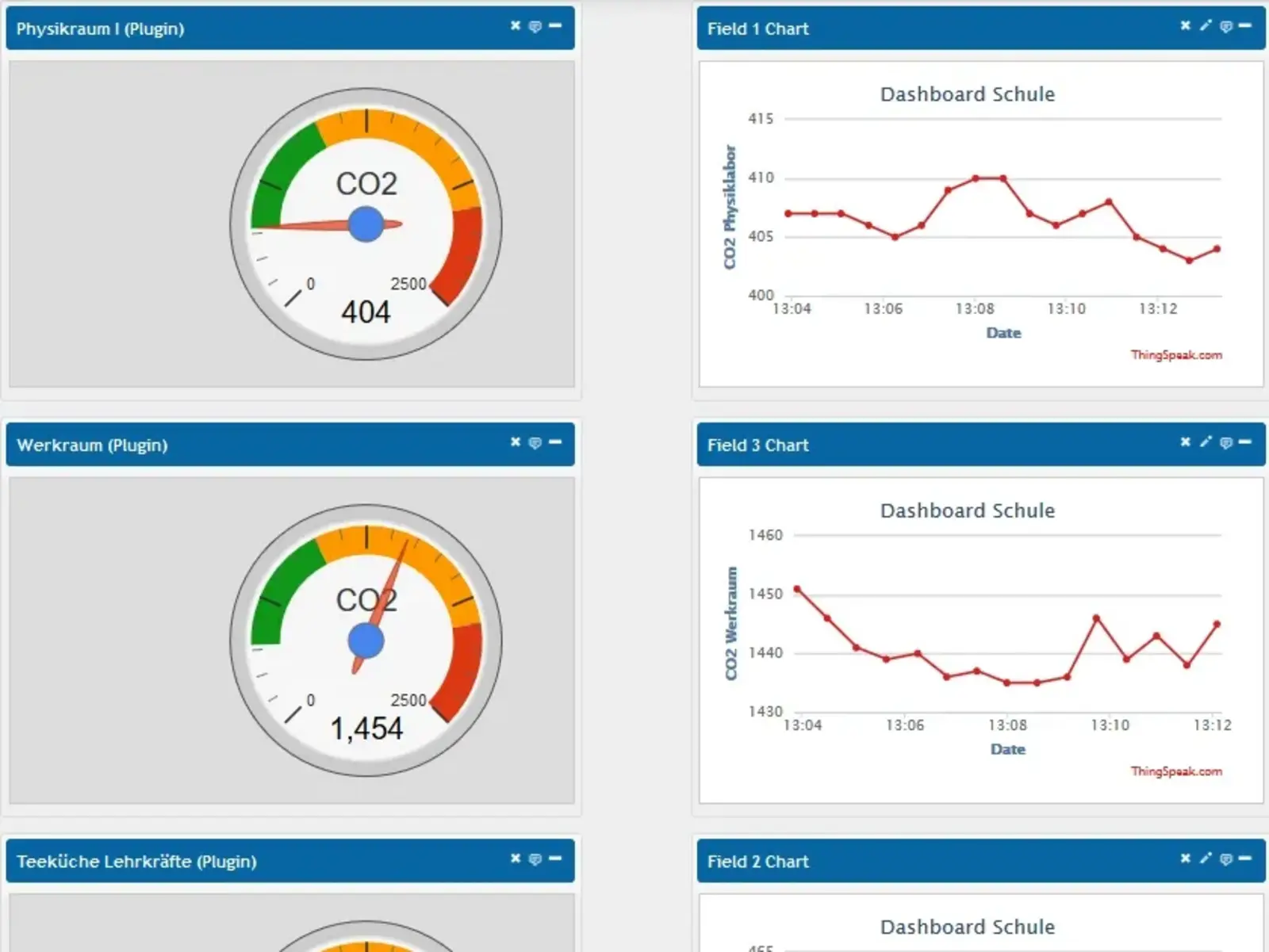 Thanks to IoT Superblocks, we can make the measurement results visible on the Internet. Only within the school, or even worldwide. Simply log in / visualize via WLAN to the Internet and the Thingspeak data platform. The history of each room can be viewed at any time, so there is nothing to prevent ventilation competition from a technical point of view. The Thingspeak server from Mathworks even allows the use of Matlab for statistical analysis or for modeling predictions (more about mathematical models and Matlab here). Even graphical elements (gauge) can be integrated. Curious? Everything else here.