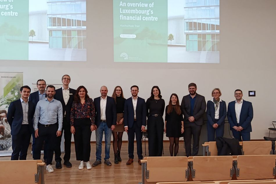 Last Tuesday, the students had the special opportunity to gain a direct look into Luxembourg’s finance and fund industry. On the initiative of Prof. Dr. Michael Hahn and Prof. Dr. Matthias Weimann, the Business School welcomed the Association Luxembourgeoise des Fonds d’Investissement (ALFI) to Lecture Hall 3 at Trier University of Applied Sciences.