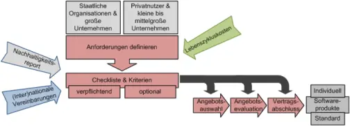 According to the procurement process, two different roles of purchasers need to be taken into account. On the one hand, there are governmental organizations and large enterprises that use structured tendering procedures in large scale procurement projects, on the other hand, home users as well as small and micro enterprises must not be ignored. Indeed, the potential to pursue sustainability goals of the first group is much higher.