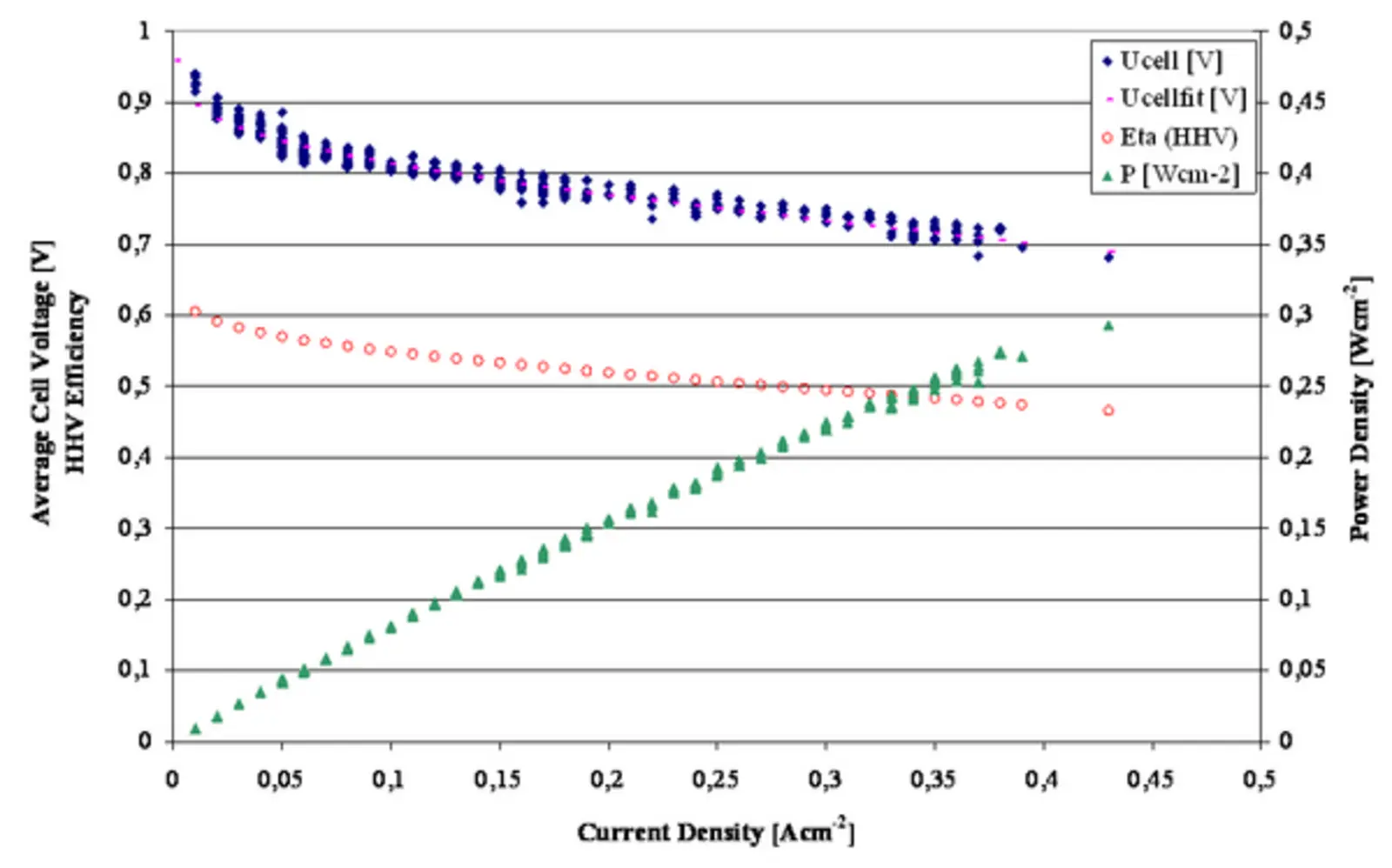 Für den Shell Eco-Marathon 2007 entwickelte das Kompetenzzentrum Brennstoffzelle ein Wasserstoff-Brennstoffzellensystem, das einen Wirkungsgrad um 50% (Brennwert) aufweist - vgl. Grafik unten.
