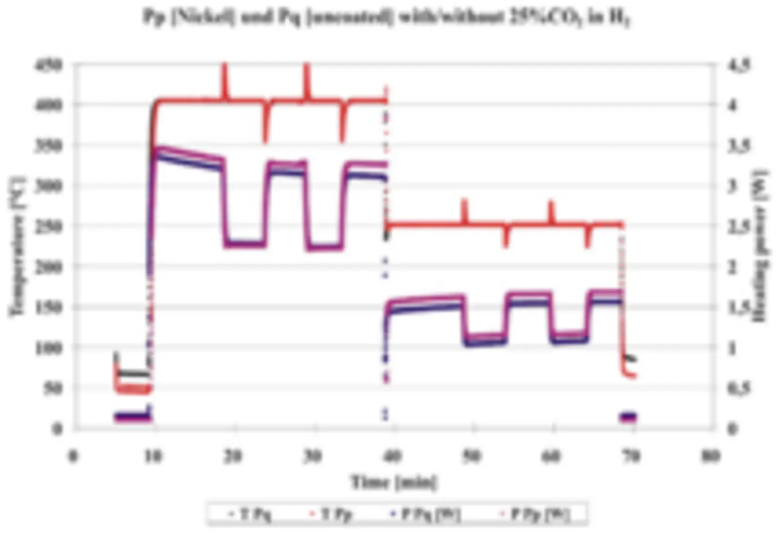 Bis jetzt existiert kein System, welches die Messungvon CO und CO2 in Wasserstoff erlaubt. Im Rahmen dieses Projektes wird ein auf dem Pellistorprinzip basierendes Sensorsystem entwickelt, welches die Reaktionswärme der katalytisch aktivierten Methanisierungsreaktion ausnutzt.