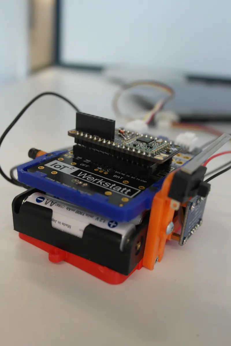 Distanzsensor, einem Spannungssensor und einem mit 3D-Druck angepassten Gehäuse.