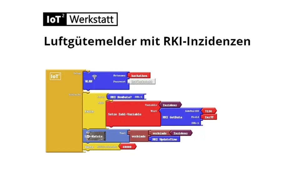 Die notwendigen grafischen Programmblöcke lassen sich einfach spielerisch zusammenpuzzeln und erweitern. Beispiele zum ausprobieren finden sich in der ZIP-Datei unter IoTW\Beispiele\CO2_Ampel\