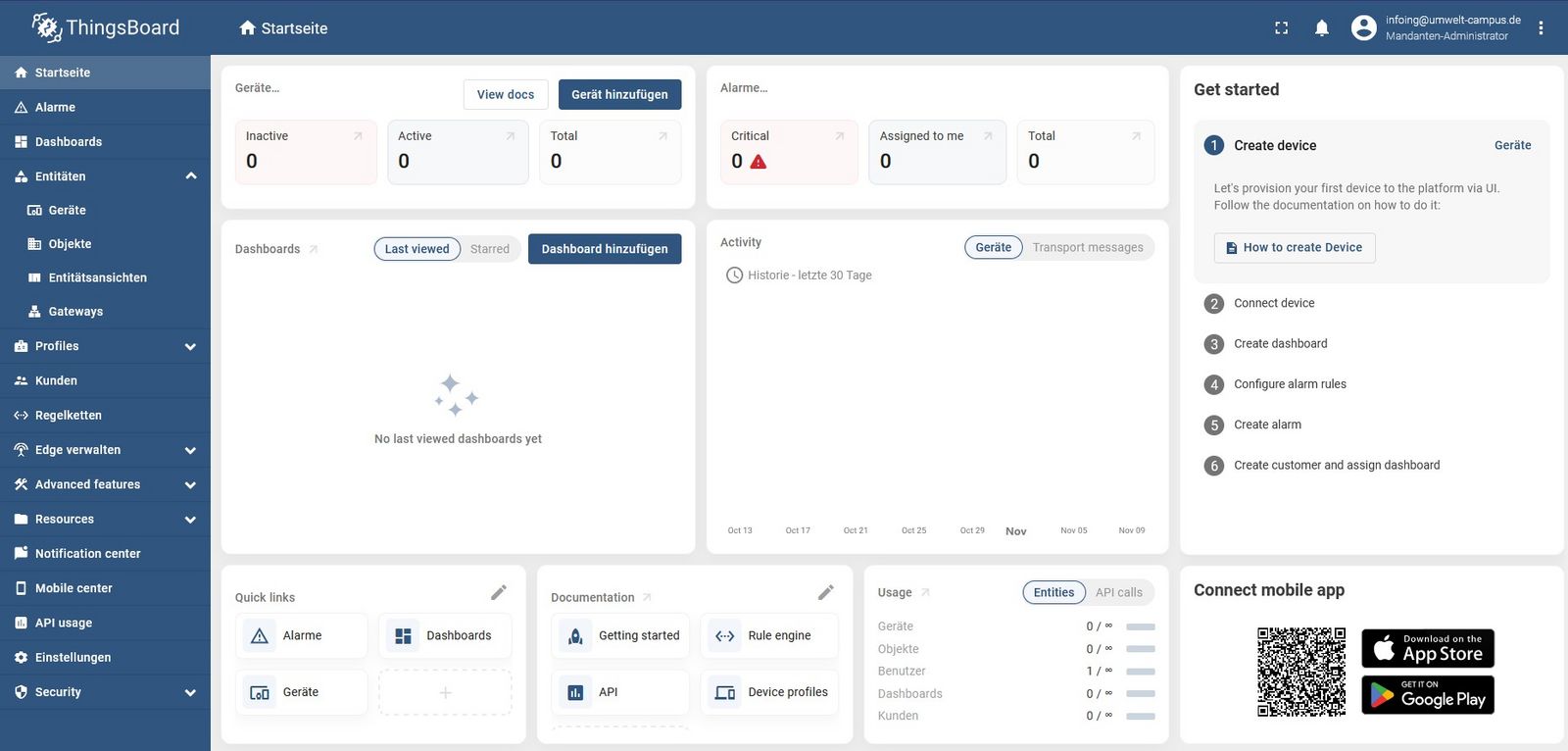 So kann die Community-Edition aussehen: Ein Beispiel unserer Thingsboard-Instanz am Umwelt-Campus findest du hier.
