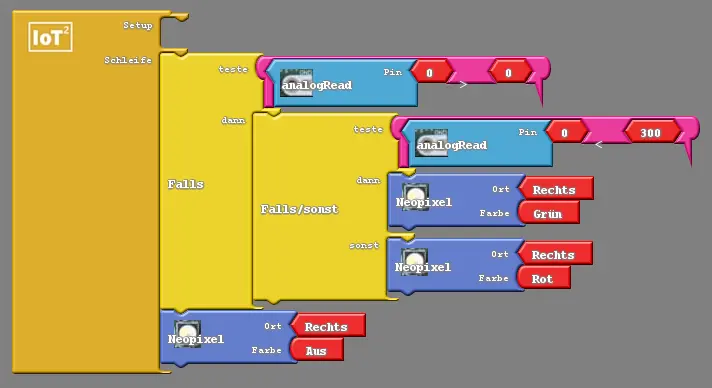Neben dem Sound-Sensor gibt es noch viele weitere Sensoren, die wir auf genau die gleiche Weise verwenden können, indem wir das "Analog Read"-Bauteil verwenden. So können wir hier beispielsweise auf Lichtsensoren, Beschleunigungssensoren, Distanzsensoren und Temperatursensoren zurückgreifen. Wenn du wissen möchtest, wie du selbst einen Lichtsensore bauen kannst, solltest du auf folgenden Link klicken: https://www.umwelt-campus.de/iot-werkstatt/tutorials/physik-selbstbau-lichtsensor