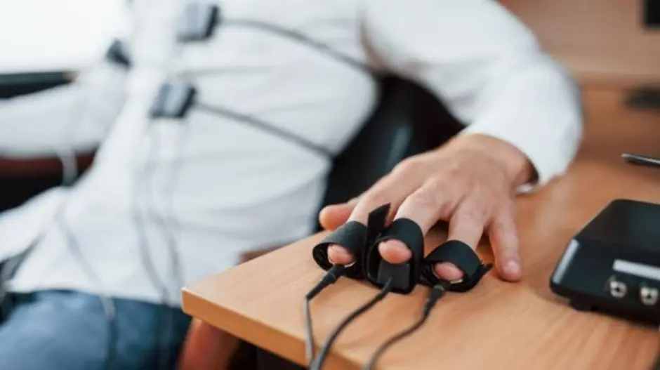 Der Polygraph – auch besser bekannt als Lügendetektor (vgl. Abbildung 1) – ist ein Gerät, das verschiedene Körperparameter wie Puls, Atmung, Blutdruck und elektrische Leitfähigkeit der Haut während einer Befragung misst und aufzeichnet.