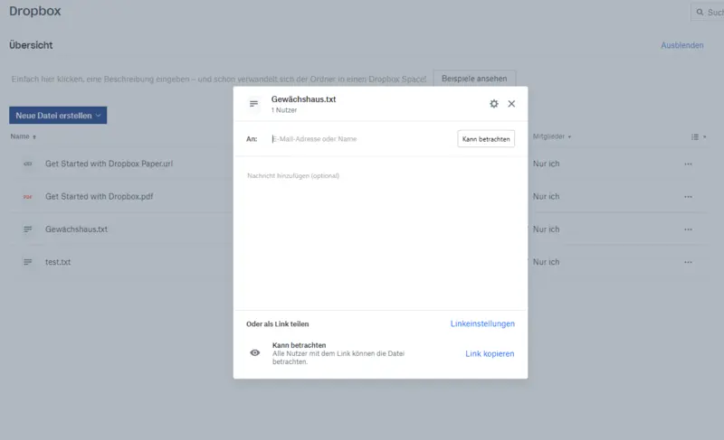 Gebe diese Datei nun für alle Menschen frei und kopiere den Link, der dir vorgeschlagen wird (vgl. Abbildung 20). Er sieht beispielsweise wie folgt aus: