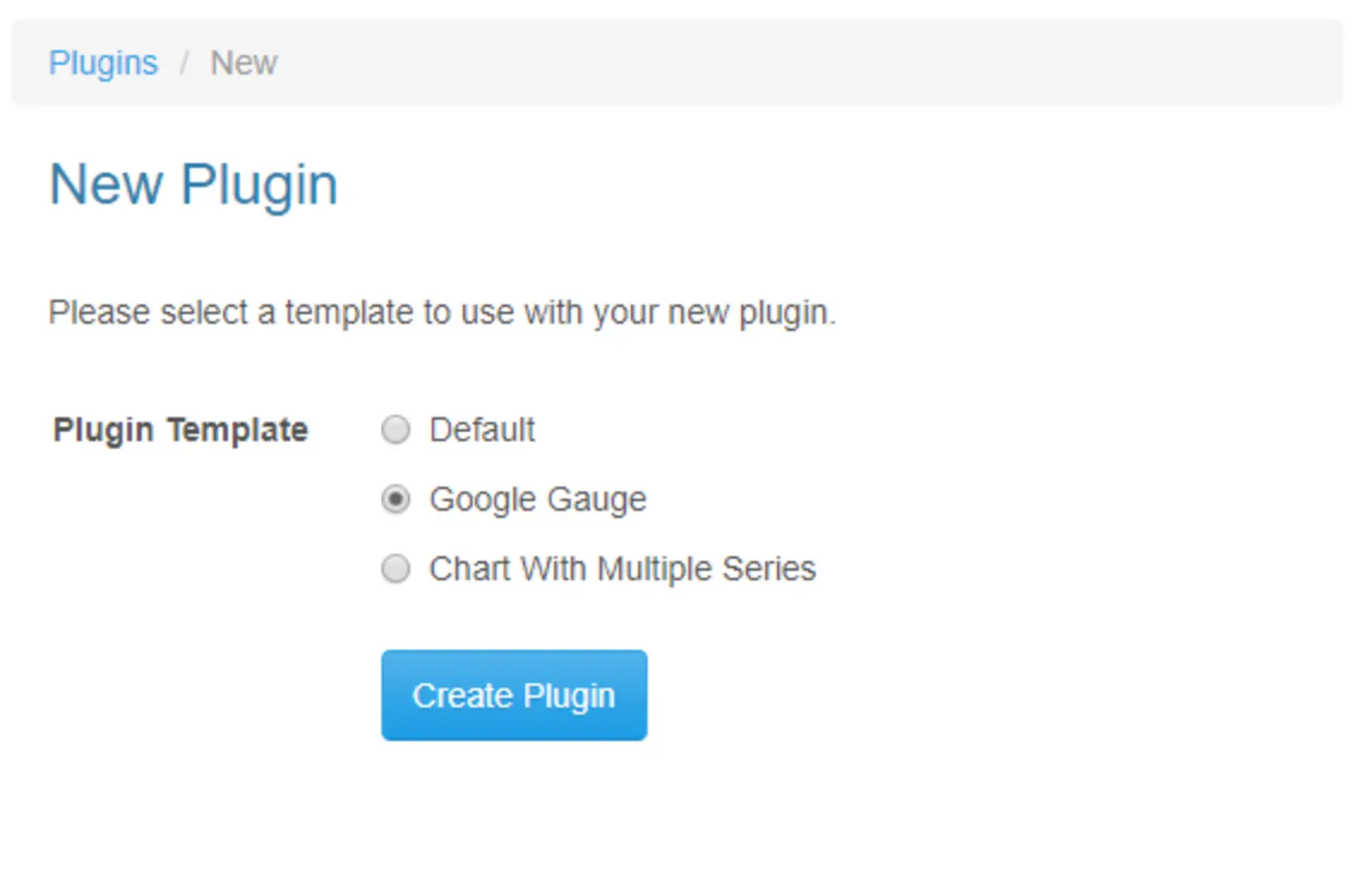 Bei Thingspeak hast du zudem zusätzliche Möglichkeiten der grafischen Darstellung. Über den Button Plugins, am oberen Rand der Webseite, hast du die Möglichkeit, eigene Darstellungen zu erzeugen (vgl. Abbildung 1). Wir zeigen dir hier, wie du den sogenannten Google Gauge erzeugst. Eine Art Tacho für Messwerte (vgl. Abbildung 2). Klickst du auf "New Plugin" erscheint ein Bildschirm gemäß Abbildung 3. Hier wählst du Google Gauge.
