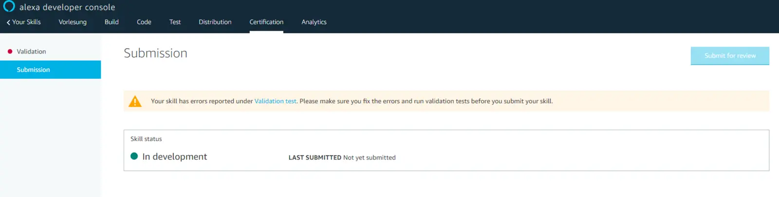 Wir müssen einen Alexa Skill erzeugen, der eine Textdatei ausliest, in der wir die Informationen finden, die Alexa uns vorlesen soll. Aus diesem Grund erzeugen wir uns einen Account bei Amazon Developer. Am besten verwendest du hier den Account, mit dem auch deine Alexa verbunden ist. Hier können wir unter dem Reiter Alexa -> Alexa Skill Kit einen neuen Skill erzeugen, den wir auf unserer Alexa installieren können (vgl. Abbildung 22). Wähle als Typ deines Skills das Flash Briefing (vgl. Abbildung 23). Hier musst nicht mehr angeben als den Link zur Textdatei (siehe Abbildung 24). Abschließend muss du den Skill noch über die Schaltfläche Certification aktivieren (vgl. Abbildung 25). Nun kannst du über ein "Alex, was gibt es neues"-Kommando die Temperatur in deinem Gewächshaus erfragen.