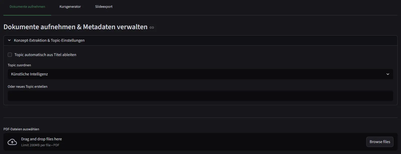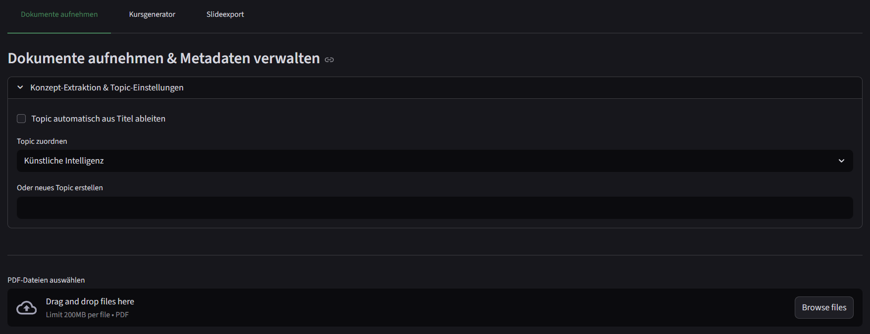 Als Weiterentwicklung zur bisherigen Wissensdarstellung auf der Plattform OpenOLAT wurde eine Anwendung zur automatisierten Generierung von Weiterbildungsinhalten ist ein intelligentes Wissensmanagement-System für wissenschaftliche Dokumente, das auf einer GraphRAG-Technologie basiert. Das System ermöglicht die automatische Verarbeitung von PDF-Dokumenten, die Suche über ein Retrieval sowie KI-gestützte Frage-Antwort-Funktionen mit Quellenbelegen. Kernfunktionen umfassen die automatische Generierung von Lernkursen mit Quellenangaben. Durch die Kombination von Large Language Models, einem semantischen Wissensgraphen und modernen NLP-Verfahren bietet das System eine leistungsstarke Plattform zur Wissenserschließung, -verwaltung und -vermittlung für wissenschaftliche und technische Inhalte.
