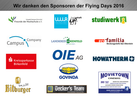 Wir danken an dieser Stelle allen die zum Gelingen der Flying Days beigetragen und sich in irgendeiner Form eingebracht haben ganz herzlich und wünschen den Studienanfängern viel Erfolg und Spaß hier am Umwelt-Campus Birkenfeld.