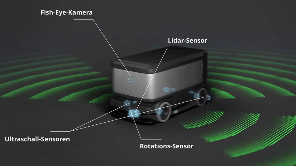 Der Demonstrator besteht aus dem Demonstratorfahrzeug „Posty“ und einem intelligenten Schließfachsystem, auch Micro-Hub genannt. Hiermit ist es möglich z.B. Briefe oder andere Sendungen sicher und autonom durch den Campus zu transportieren. Das System beinhaltet eine Web App, die es Nutzer:innen ermöglicht neue Aufträge zu erstellen. Die Aufträge werden von einem verteilten System entgegengenommen, welches die optimale Route für das Fahrzeug berechnet. Eine besondere Herausforderung von autonomen Fahrzeugen innerhalb von Gebäuden ist die Lokalisierung, da hier kein GPS-Signal in ausreichender Stärke verfügbar ist. Zur Lösung dieses Problems wurden verschiedene Lokalisierungsalgorithmen getestet und erprobt. Zur Realisierung der möglichen Fahrmanöver wurden ein regelbasierter und ein KI-basierter Ansatz implementiert. Der KI-Ansatz ermöglicht es Umgebungen flexibel und stetig zu lernen, um das Fahrverhalten des Fahrzeugs kontinuierlich zu verbessern.