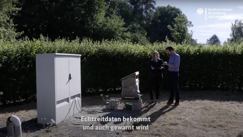 Einer der Demonstratoren, die im Rahmen des Projekts entwickelt werden, ist der "Smarte Bienenstock". Mittels Sensorik ist dieser in der Lage, verschiedene Daten aufzuzeichnen (z.B. Temperatur, Gewicht, Ausflüge der Bienen, etc.) und den Imker somit zu unterstützen, der nicht mehr notwendigerweise vor Ort sein muss, sondern remote auf die Echtzeitdaten zugreifen kann. Darüber hinaus kann der Imker auch gewarnt werden, wenn sich z.B. in den Daten größere Anomalien finden (z.B. durch Vandalismus). Um aus den aufgezeichneten Umgebungsdaten Anomalien zu erkennen, kommen KI-Algorithmen zum Einsatz, was den Bienenstock letztendlich zum "smarten" Bienenstock macht.