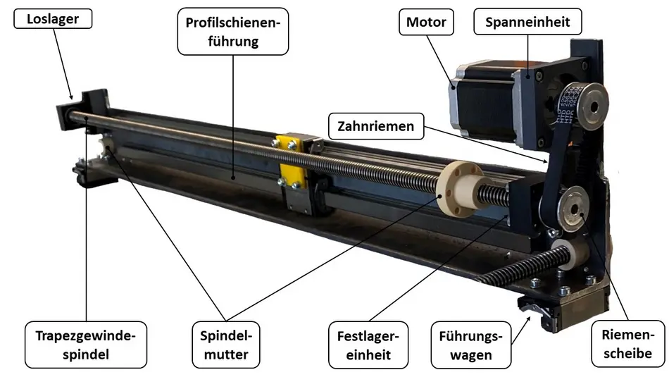 Die weiteren Elemente, wie die Bewegung des Extruders in die verschiedenen Raumrichtungen, die Beheizung der Druckplatte oder die Förderung des Druckmaterials wurden als Teilprojekte unter Berücksichtigung der Schnittstellen entwickelt und umgesetzt (vgl. Abb. 3 + 4).