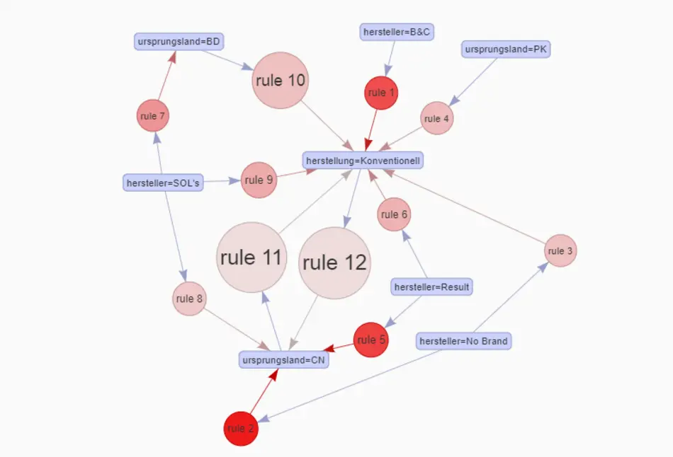 In einem anderen Bereich wurde ein Programm entwickelt, mit dem Mitarbeiterinnen und Mitarbeiter eines Handelsunternehmens Tausende von Datenqualitätsregeln analysieren und ihren Nutzen bewerten können. Auch hier ist die Visualisierung der Daten aufgrund der Vielzahl von Regeln von zentraler Bedeutung.