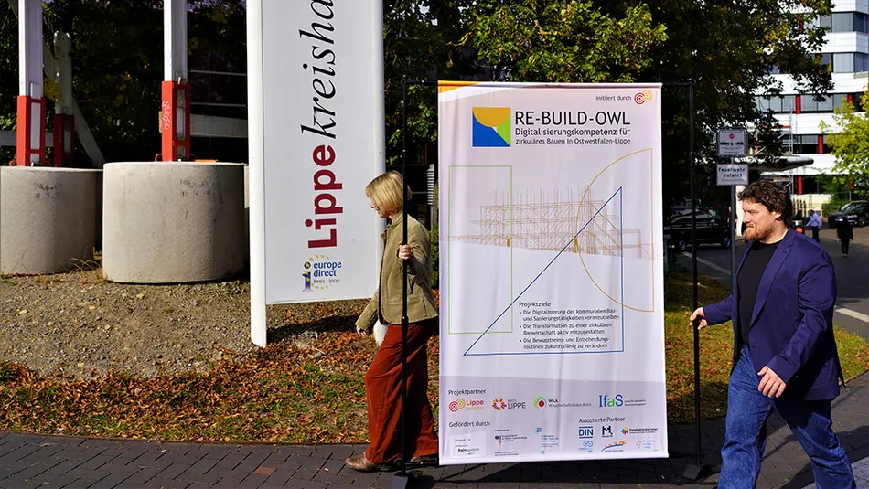 Das Projekt RE-BUILD-OWL gestaltet die Bauwende in OWL aktiv mit und nutzt die Chancen einer Transformation der kommunalen Bau- und Sanierungstätigkeiten zum zirkulären Bauen für die Regionen Lippe und Ostwestfalen-Lippe. Als Modellvorhaben im Bereich Digitalisierungskompetenz für kommunales Handeln hat RE-BUILD-OWL zum Ziel, partizipativ und co-kreativ eine kommunale Innovations- und Transferplattform sowie eine praxisnahe Roadmap „Zirkuläres Bauen OWL“ zu entwickeln.