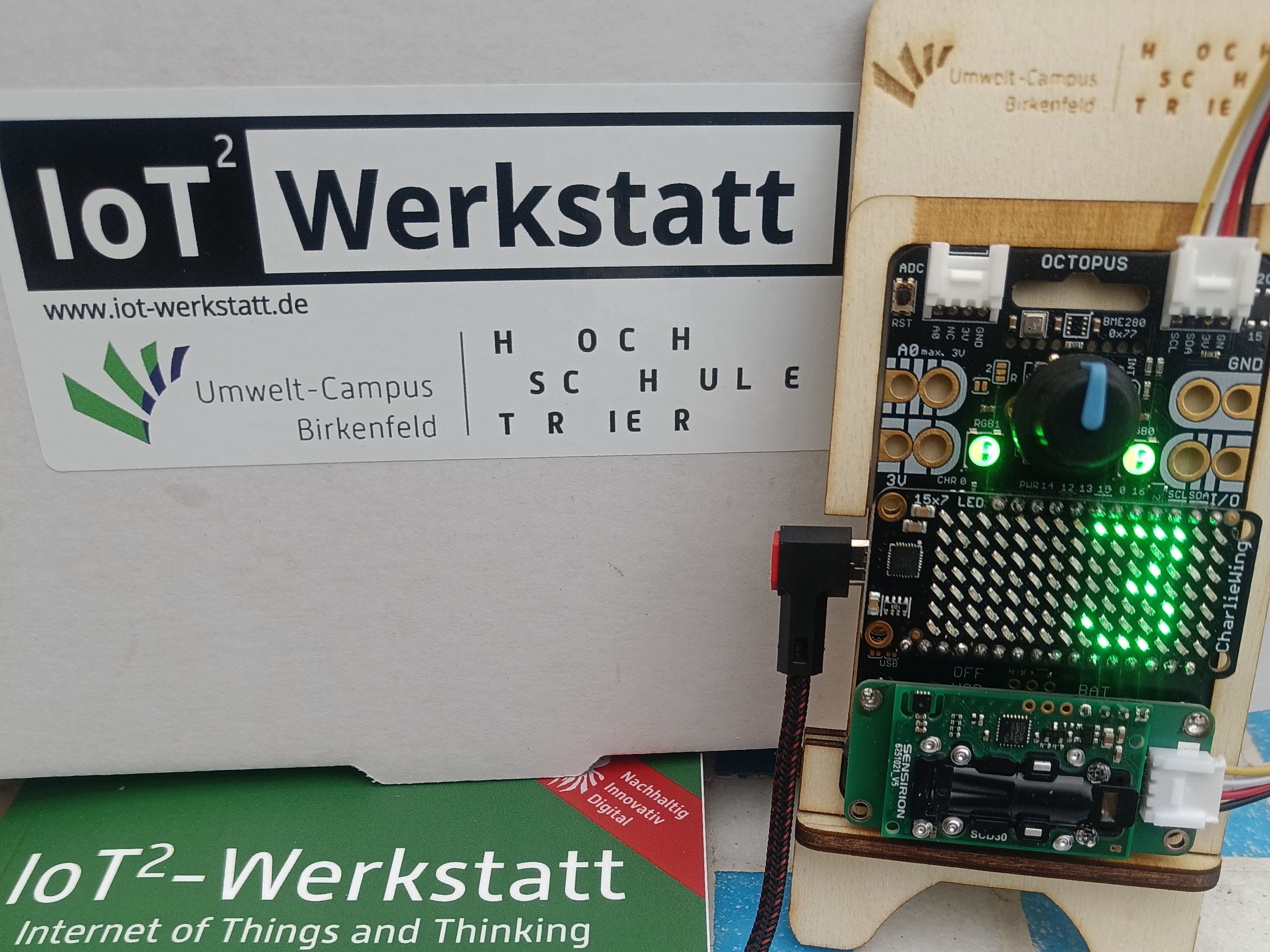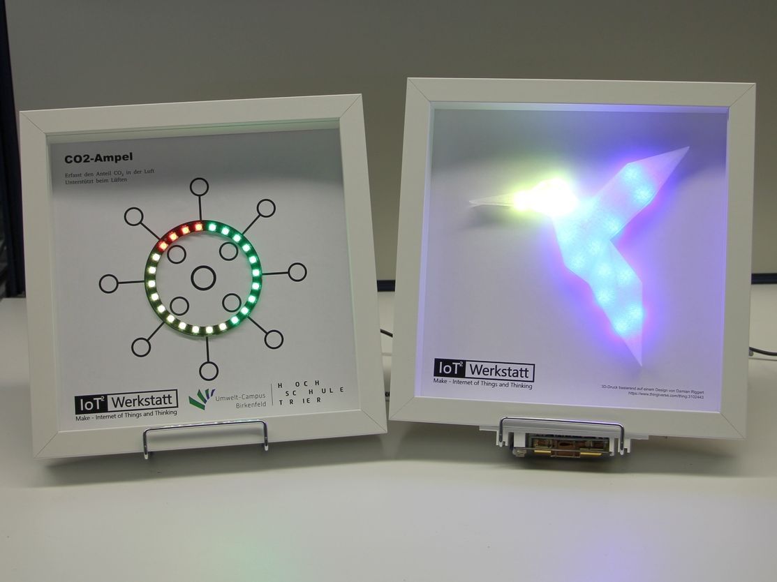 Unter dem Motto "BNE im MINT Unterricht: MINT heute für morgen" hat die IoT2-Werkstatt deshalb mit Lehrkräften aus dem Saarland den Selbstbau von CO2-Ampeln initiiert. Schlechte Luft, d.h. mangelnde Lufthygiene lässt sich einfach durch CO2- oder VOC (volatile organic components) messen und anzeigen. Entsprechende Datenerfassung, sowie bei Bedarf auch eine Internetvisualisierung ähnlich wie in Lettland (s.u.), lassen sich von den Schülerinnen und Schülern einfach per grafischer Oberfläche selbst programmieren. So werden Algorithmen im Anwendungskontext direkt anfassbar.