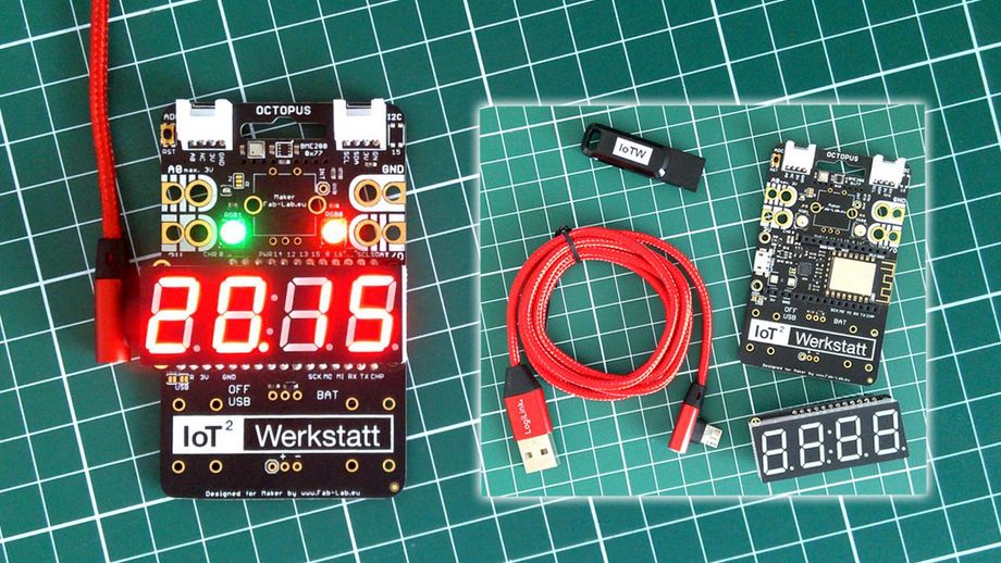 Die Idee der IoT-Werkstatt ist innerhalb der Expertengruppe IoT im Rahmen der Vorbereitung zum Nationalen IT-Gipfel 2016 entstanden. Die Software und das didaktische Konzept wird vom Team des Umwelt-Campus gepflegt, der IoT Octopus stammt aus der Maker-Werkstatt von Guido Burger.