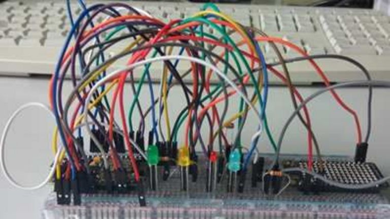 Im Mittelpunkt stehen die Mikrocontroller Octopus (ESP8266) und Makey (ESP32), ausgestattet mit Sensoren, LEDs und jeder Menge kreativer Möglichkeiten. Dank IoT-Werkstatt/Makey:Lab kannst du Programme einfach per Drag & Drop zusammenklicken und dabei spielerisch algorithmisches Denken lernen.