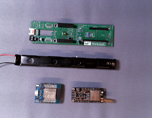 Wenn wir die Platine und die beiden Module fertig gelötet haben, können wir das ESP32-Modul und das LoRa-Modul einfach auf die Platine stecken.