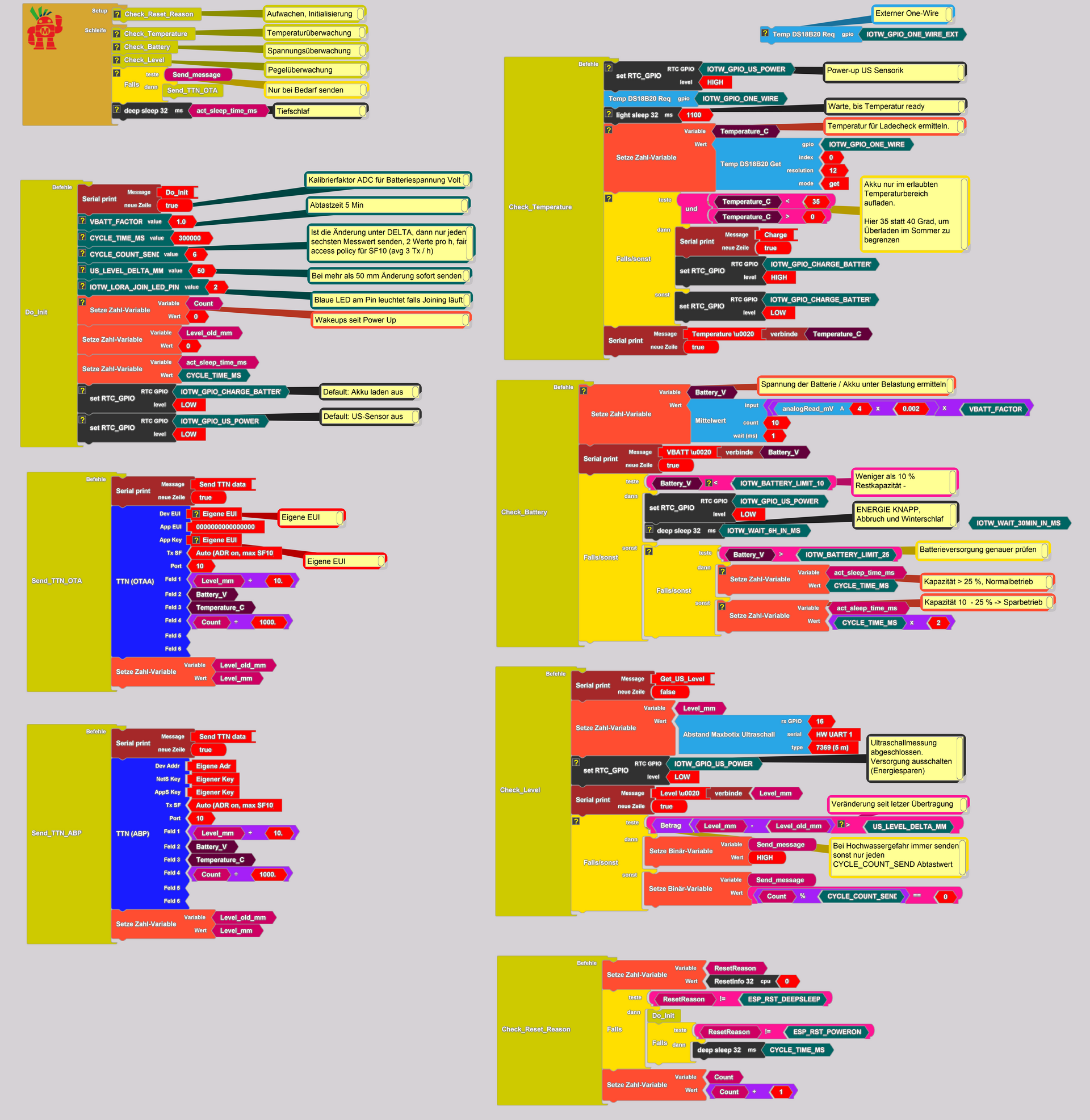 Keine Angst, du must die Software nicht selber nachbauen - nur verstehen, wie sie funktioniert. Das komplette Pegel-Programm findest du nach Installation der Entwicklungsumgebung unter <dein Installationspfad>\IoTW\example_makey\ TTN_LoRa\Pegel_Maxbotix_V4_lightsleep