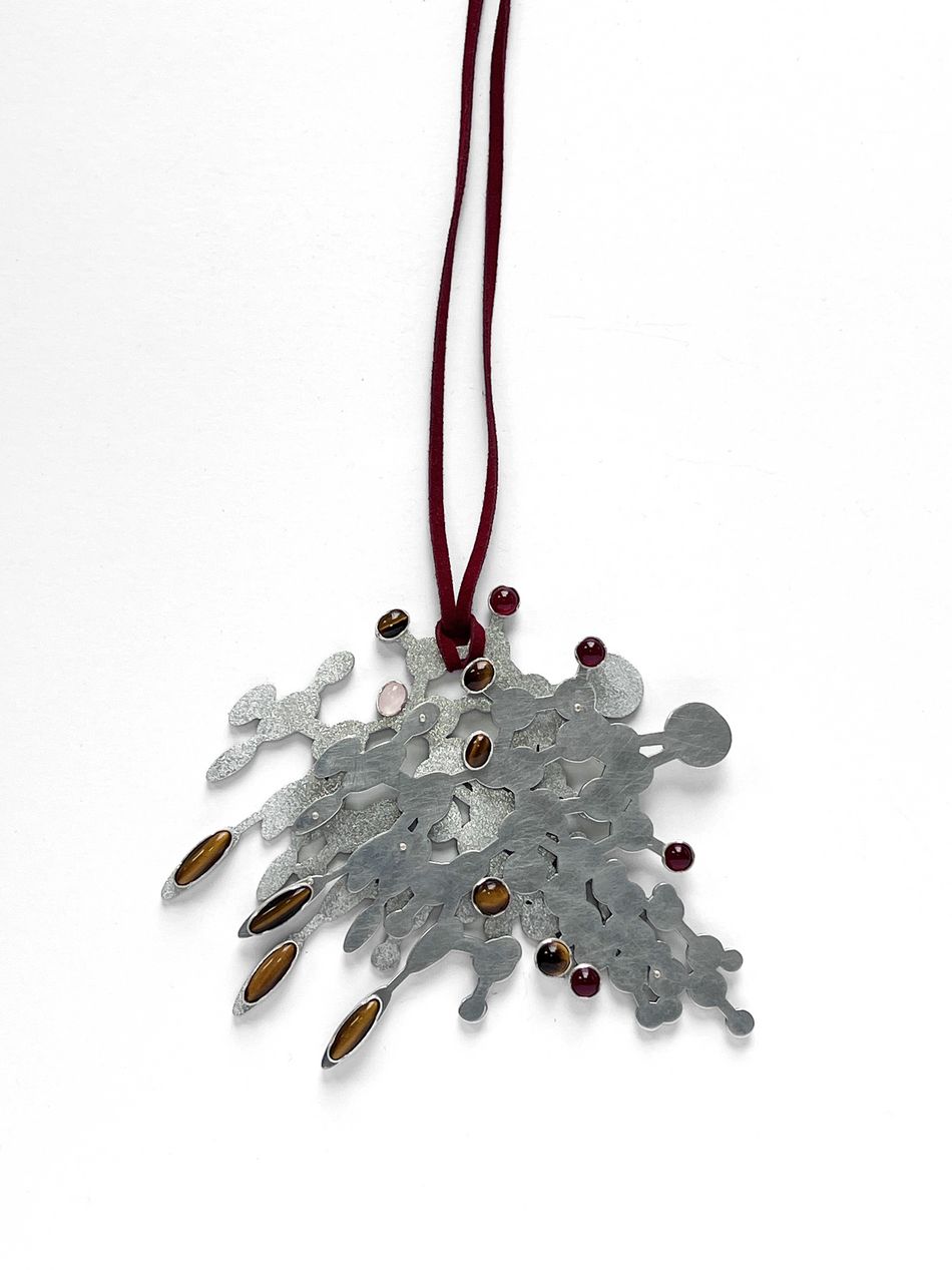 Die Edelsteinapotheke befasst sich mit der Psychologie des Aberglaubens, der sich im Glauben an Heilsteine und Amulettschmuck zeigt. Abstrahierte Psychopharmakologie, botanische Heilmittel, Tintenkleckse und Glücksbringer bilden den Rahmen für die "heilenden" Steine. Ausgehend von der Wirksamkeit des Glaubens bzw. des Placebos und den psychosozialen Funktionen von Schmuck, untersucht "The Gemstone Apothecary" die reflexive Akzeptanz von Überzeugungen, die in unsicheren Zeiten als Balsam für die menschliche Psyche dienen können.