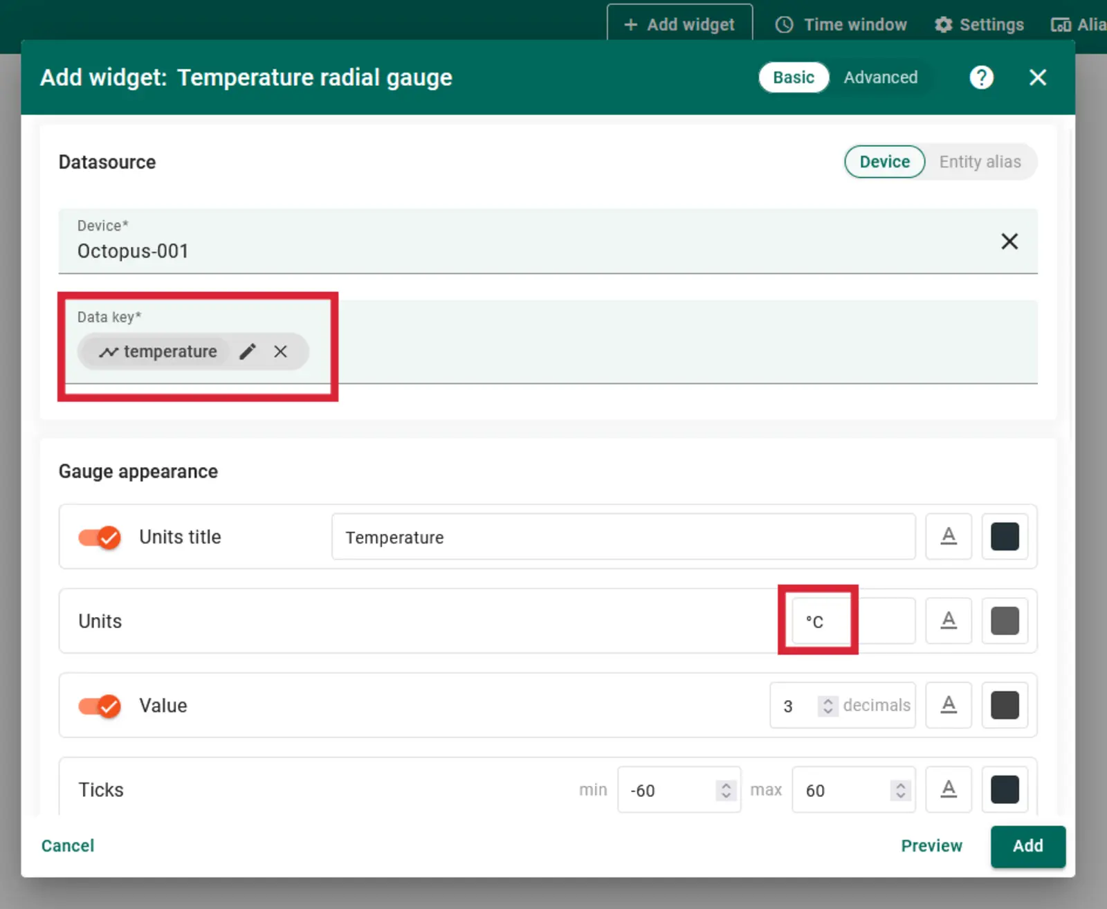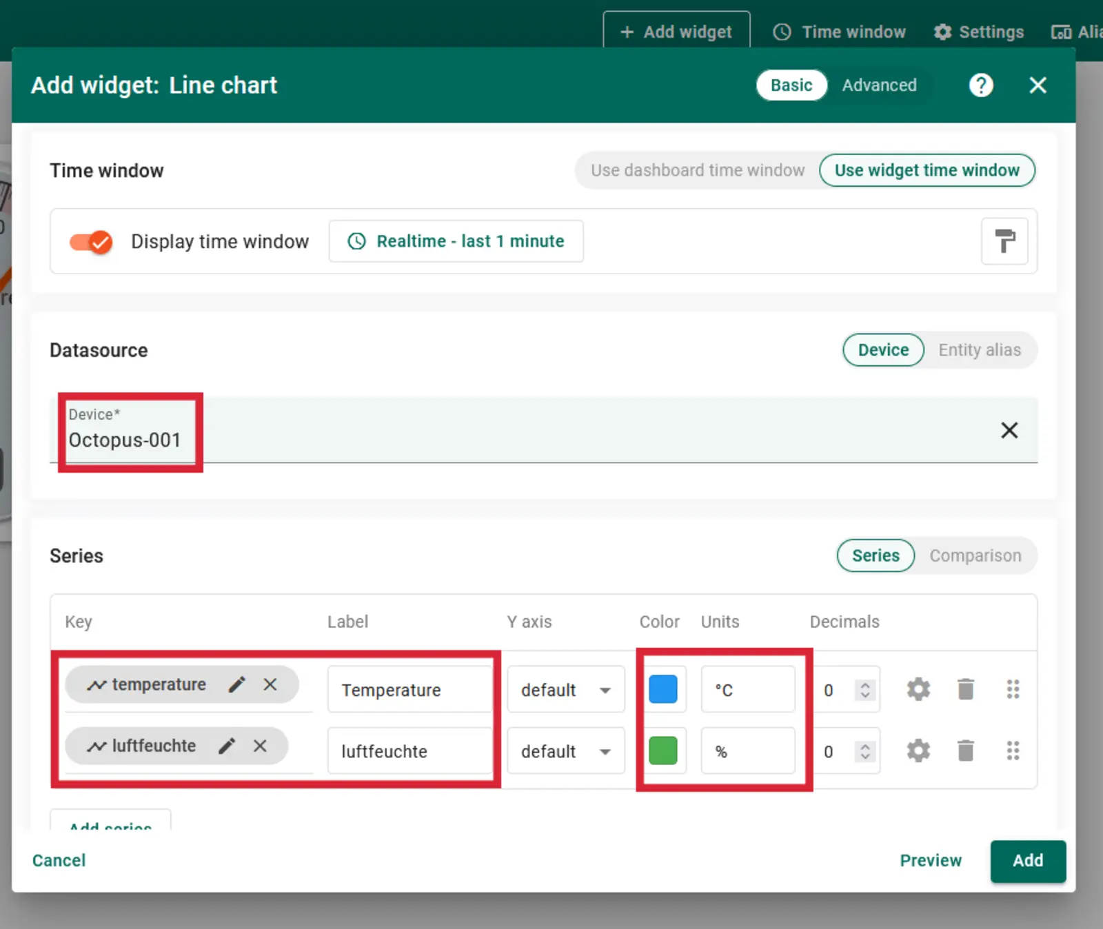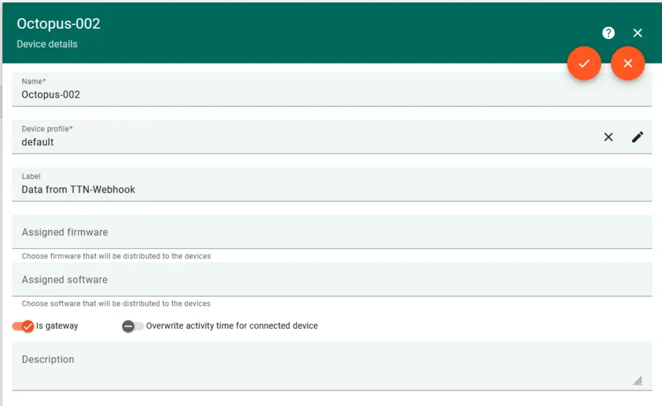 Wie im Beispiel oben, wollen wir unsere Daten im Thingsboard visualisieren. Der Unterschied: statt über eine WLAN-Verbindung die Daten direkt vom Ocotopus zum Thingsboard zu senden, senden wir unsere Daten vom Octopus mit dem Feather-Shield per LoRaWAN an TTN, um uns den mobilen Hotspot zu ersparen. Von dort aus nutzen wir die Internetverbindung des TTN-Servers, um die Daten per Webhook an unser Thingsboard zu senden.