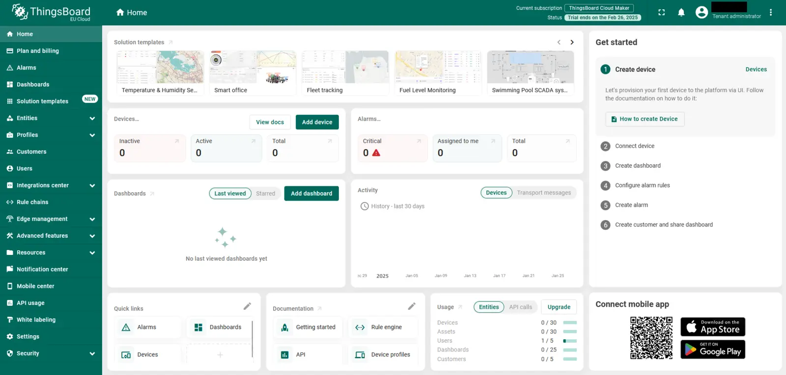 Thingsboard ist eine Open-Source-IoT-Plattform, die für fortgeschrittene Visualisierung, Alarmierungen und Automatisierungen entwickelt wurde.