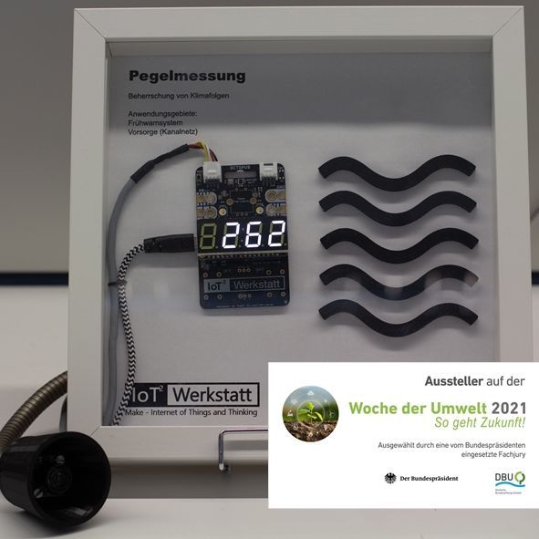 Jetzt ergreifen Jugendliche selbst die Initiative: Im Landkreis St. Wendel haben sich ortsansässige Handwerksbetriebe, engagierte Lehrkräfte und der Katastrophenschutz zusammengefunden, um eine einmalige Selbstbauaktion zu starten. Die Klasse 8a/b der Gemeinschaftsschule Türkismühle hat eine eigene Version der Pegelmesser entwickelt, gelötet und zusammengebaut. In einem Pilotprojekt wird diese gemeinschaftlich erstellte Infrastruktur nun rund um den Bostalsee installiert und vom Katastrophenschutz getestet. Langfristiges Ziel ist die Entwicklung einer KI-Prognose der lokalen Pegelstände auf der Basis von Satellitenfernerkundung und örtlichen Wetterstationen (auch zur Wetterstation und Modellen gibt es bereits IoT2-Mitmachprojekte).