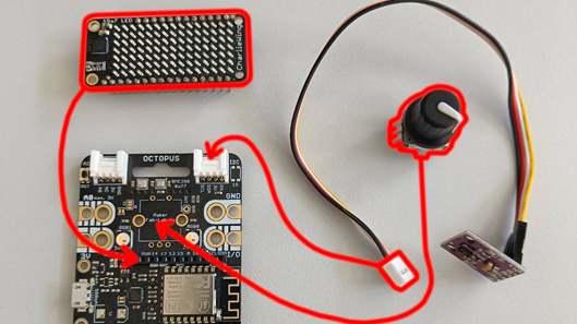 Als User-Interface zur Bedienung und Eingabe der Eigenschaften nutzen wir die CharliePlex LED Matrix oder ein OLED-Display und einen Drehencoder (z.B. diesen).