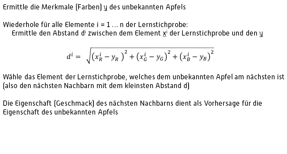 Diese Lernstichprobe wird anschließend in der Anwendungsphase genutzt, um die Äpfel nach ihrem Geschmack zuklassifizieren. Dabei ist: